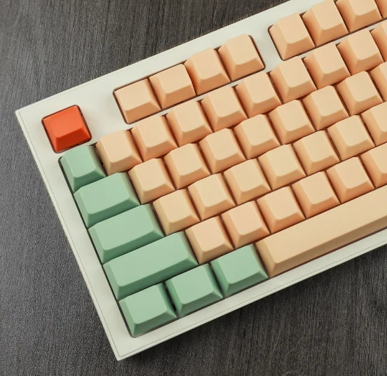 - The set's vibrant pastel color palette—mint green, beige, light orange, and bright orange—offers a fresh and playful aesthetic perfect for customizing your mechanical keyboard.
