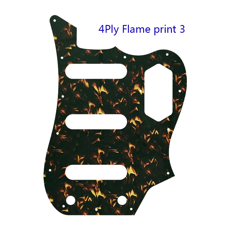 Enhance your US Fender Bass VI guitar with this high-quality 3-ply pickguard, featuring a variety of vibrant colors and patterns including classic tortoise shell, vintage yellow, mint green, and dynamic flame print designs. Crafted from durable PVC and composite materials, this pickguard weighs approximately 200 grams and offers a glossy, polished finish that highlights its striking aesthetic. Designed for easy installation, it comes with 14 mounting screws and a protective film to ensure a pristine look. Compatible with models requiring the FD Bass VI designation, it allows for customization to perfectly match your style and guitar.