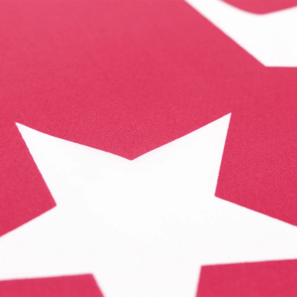 - Features a vibrant pink background with a high-contrast white star and large uppercase “M,” designed to stand out and make a bold statement wherever it is displayed.