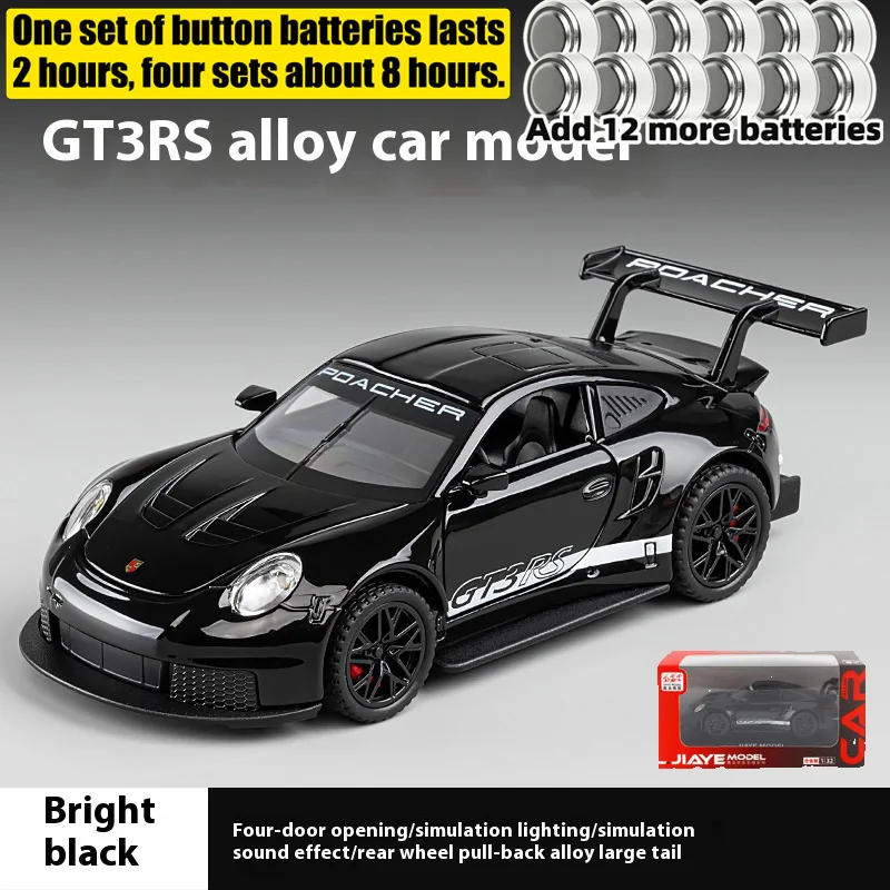 Imagine proudly displaying this striking Porsche GT3 RS diecast model as part of your collection, impressing visitors with its intricate details and dynamic features. Its realistic design and interactive sound and light functions make it more than just a model – it’s a statement piece that brings racing excitement into your space. Whether you’re a passionate collector or simply love high-performance cars, this model promises both aesthetic appeal and lasting enjoyment. Add it to your collection today and experience the thrill of owning a truly authentic racing replica.