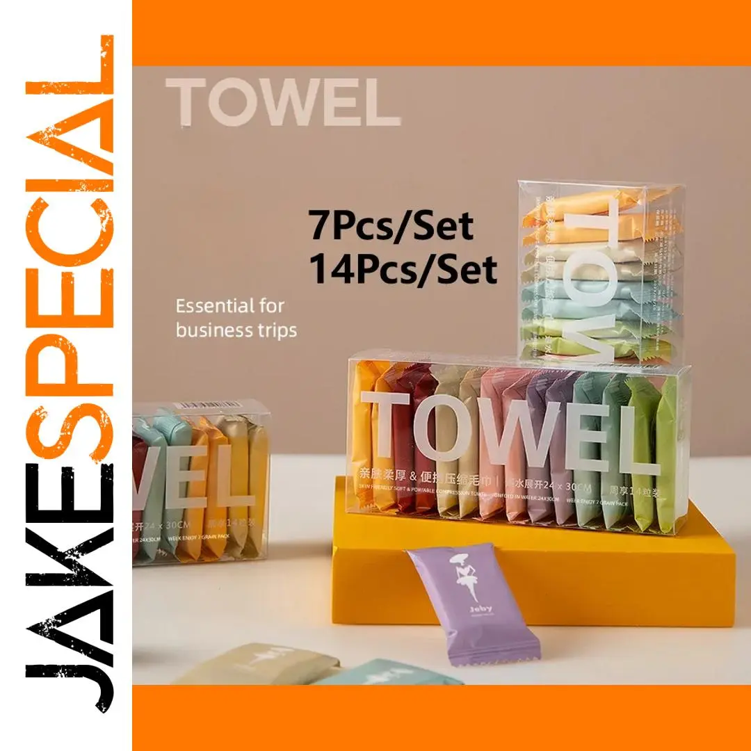 Experience the convenience of these portable compressed towel tablets, available in 7 or 14-piece sets. Made of 100% cotton and bamboo fiber using nonwoven technology, these towels are thick, durable, and quick to expand when soaked in water. Each individually packaged, space-efficient towel is washable, reusable, and biodegradable, making it ideal for personal hygiene, surface cleaning, or spill management on the go. Their compact design easily fits into bags, wallets, or pockets, offering a fresh, practical solution for travel, camping, or daily use. Stay prepared and environmentally conscious with these versatile, high-quality towels that combine functionality with sustainability.
