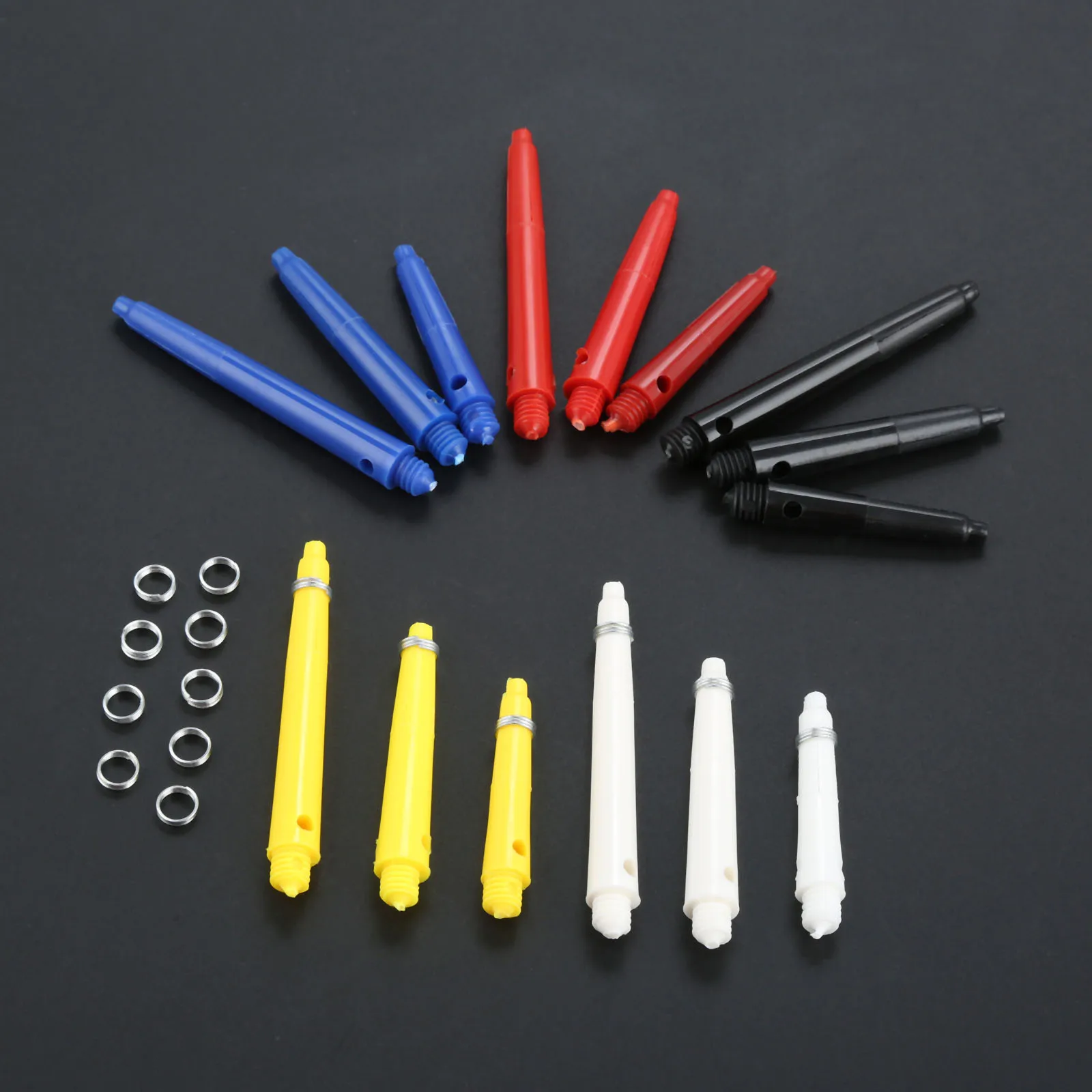 Enhance your dart game with this set of 50 high-quality nylon dart shafts available in 27mm, 35mm, 45mm, and 48mm lengths. Crafted from glossy, vibrant-colored nylon in red, blue, white, black, and yellow, each shaft features a precise 4.5mm screw thread compatible with standard dart stems. The set includes 50 O-rings to ensure a snug, secure fit and optimal performance. Designed for both professional and recreational players, these durable shafts combine stylish design with practical functionality, making it easy to customize your darts and achieve consistent throws for ages over 8 years.