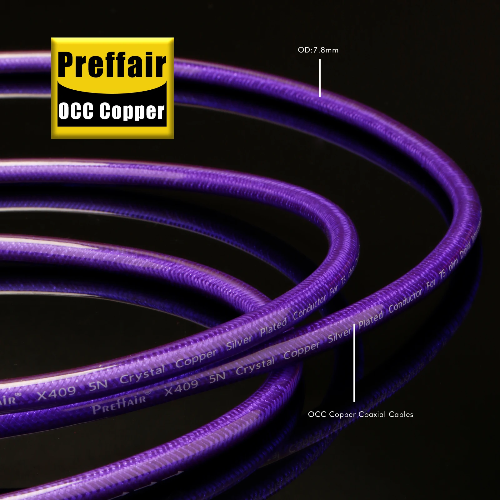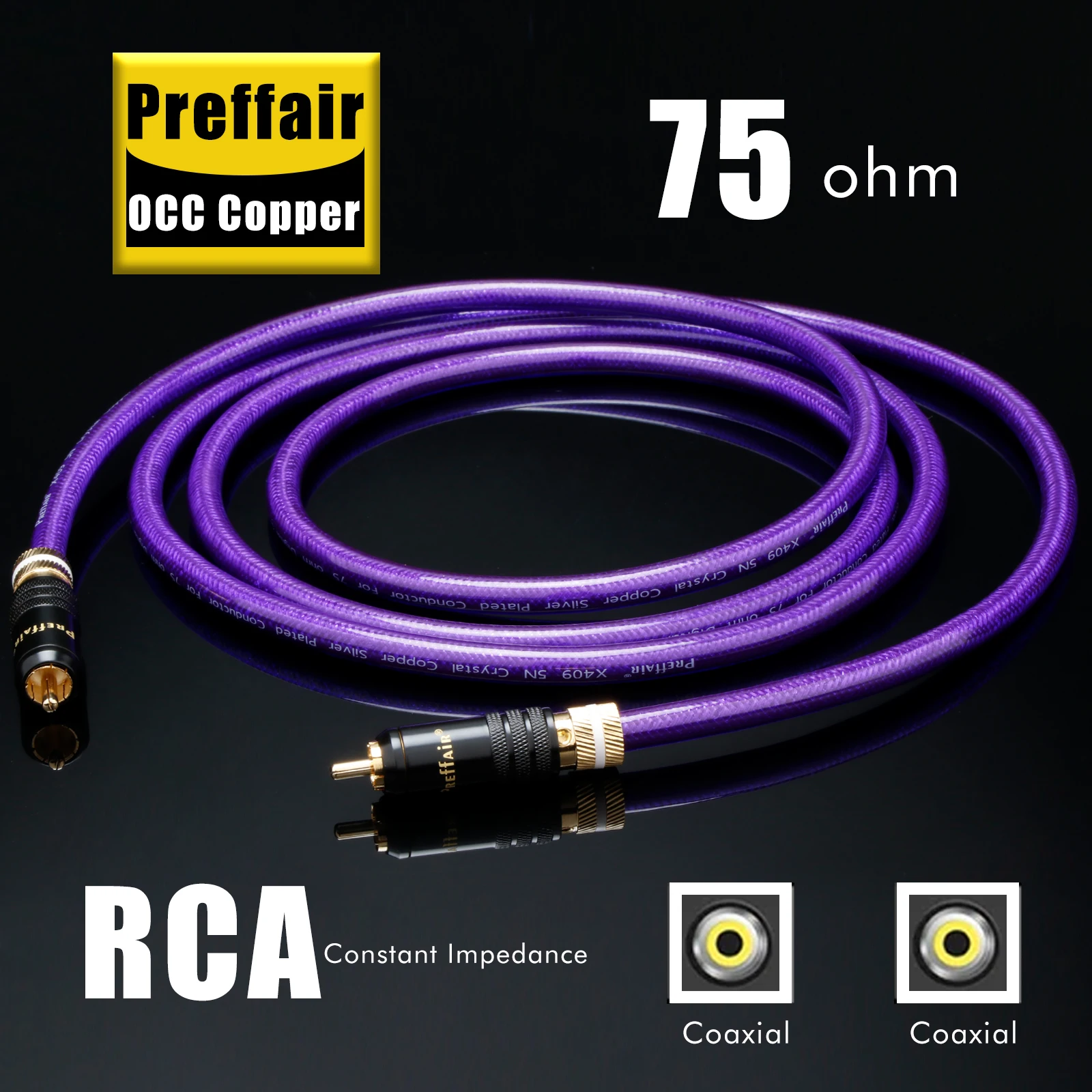 Imagine upgrading your audio and video setup with this stunning, high-quality coaxial cable. The vivid purple hue and sleek design instantly add a touch of modern elegance to your system. Its flexible, 8mm outer diameter construction ensures durable performance while maintaining ease of installation. The gold-plated RCA connectors with textured grips make securing connections simple, preventing oxidation and signal loss. Inside, two thick OCC copper wires plated with silver work harmoniously with multiple smaller silver-plated OFC copper strands to deliver pristine audio and video quality. The combination of ultra-low capacitance insulation, thick copper shielding, and a robust PVC jacket guarantees interference resistance and long-lasting reliability, providing you with a premium high-fidelity experience every time you press play.