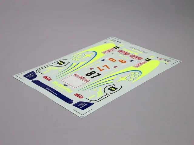 Keys features of the racing decal sheet for Subaru Impreza