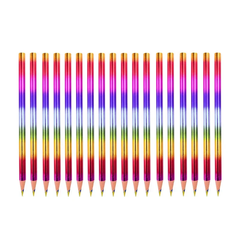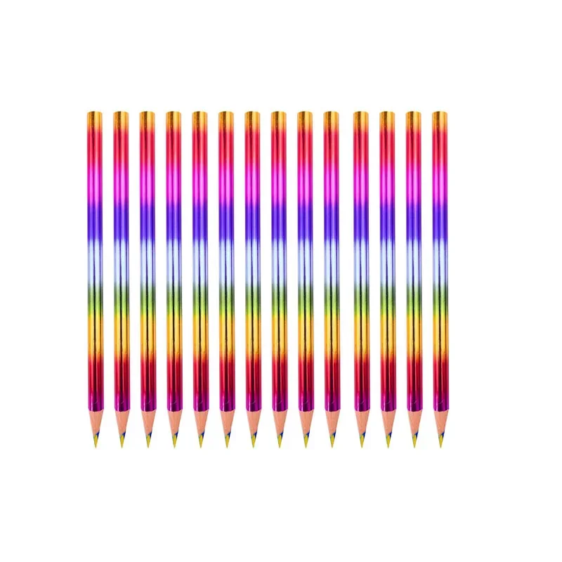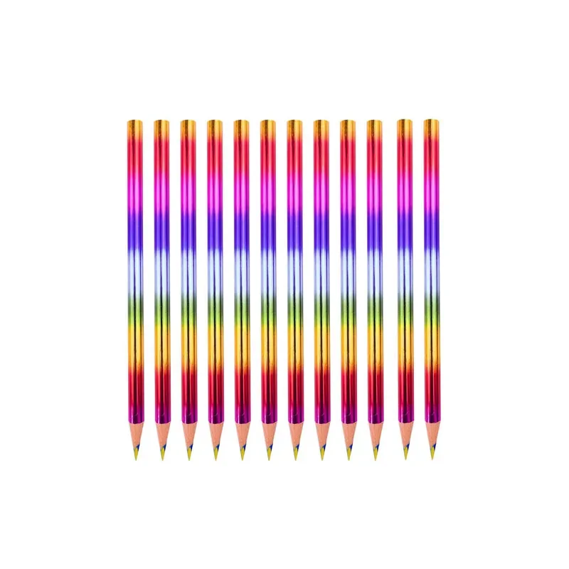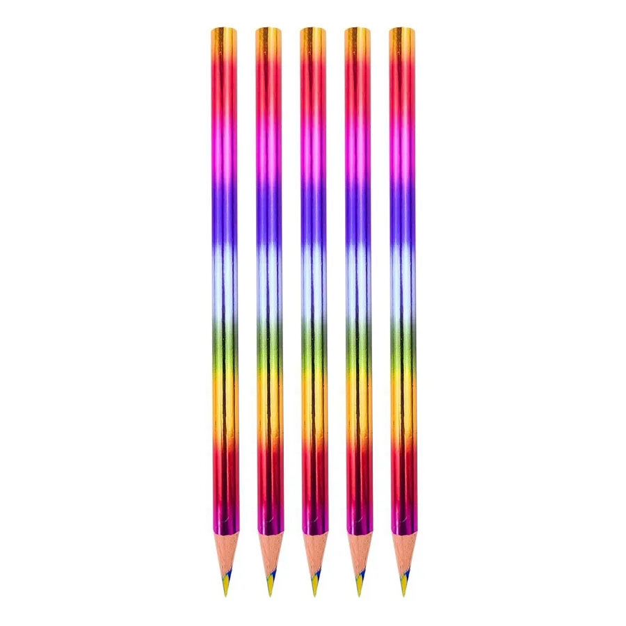 Transform your writing experience with this delightful set of Rainbow Pencils, designed to inspire joy and creativity! Featuring a vibrant array of multi-colored metallic exteriors, these pencils stand out with hues of pink, purple, blue, green, and gold, creating a captivating visual effect. Each pencil is sharpened to perfection, revealing light-colored graphite with an HB hardness rating for smooth writing. Available in sets of 5, 10, 12, 14, 16, 18, and 20 pieces, they are an ideal gift for birthday parties or back-to-school moments, ensuring your child expresses themselves artistically and colorfully without any harmful chemicals.