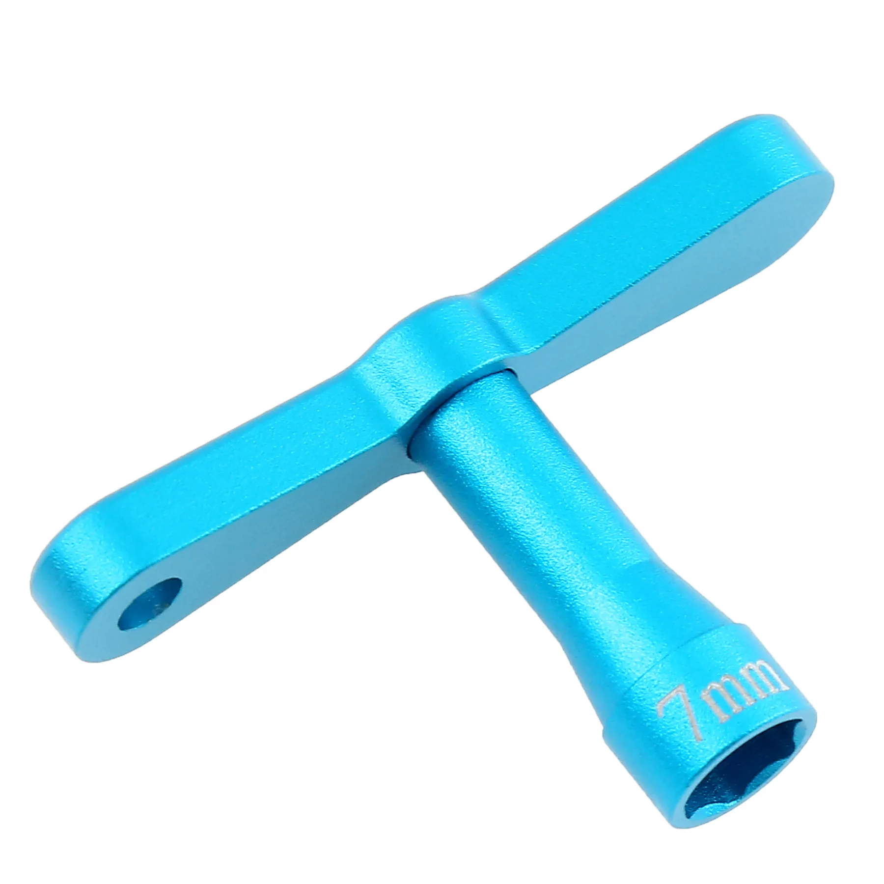 Imagine easily maintaining your RC remote control car with this visually striking set of tools. Featuring anodized aluminum finishes in bold colors like yellow, red, purple, blue, and black, these tools not only offer functionality but also add a splash of color to your toolkit. The sleek design includes cylindrical handles engraved with clearly visible size markings, paired with curved T-shaped arms for effortless grip and leverage. The small hanging holes make storage simple and organized. Crafted from durable metal, this set ensures longevity and precision for your project needs. Whether adjusting tires or nuts, these tools provide both style and reliability to elevate your RC car maintenance experience.