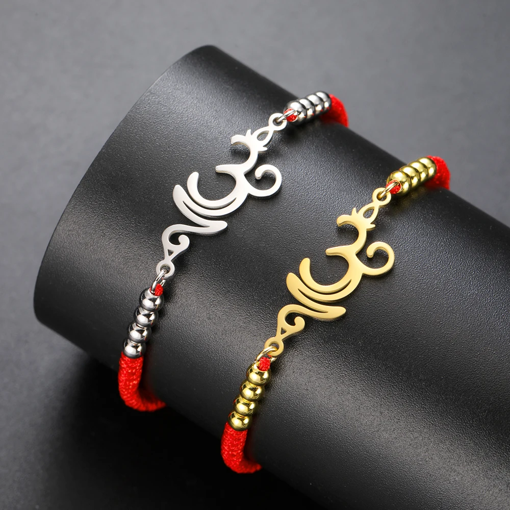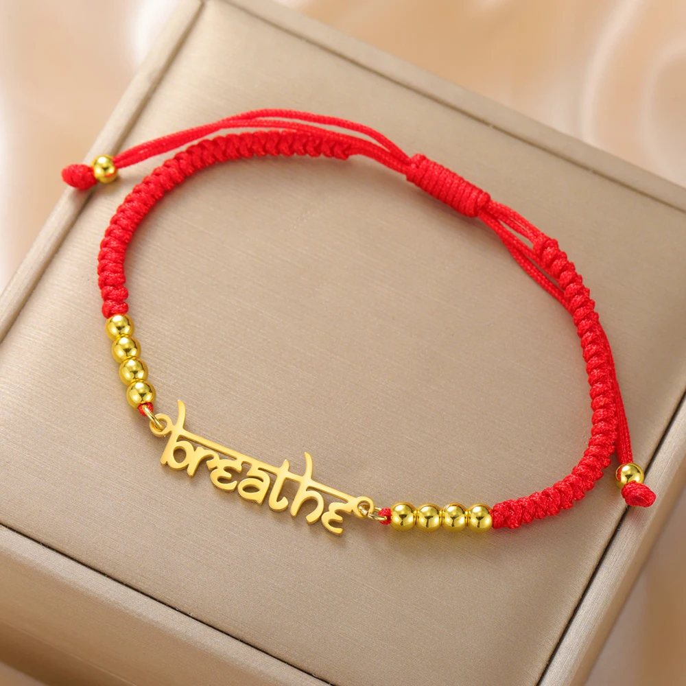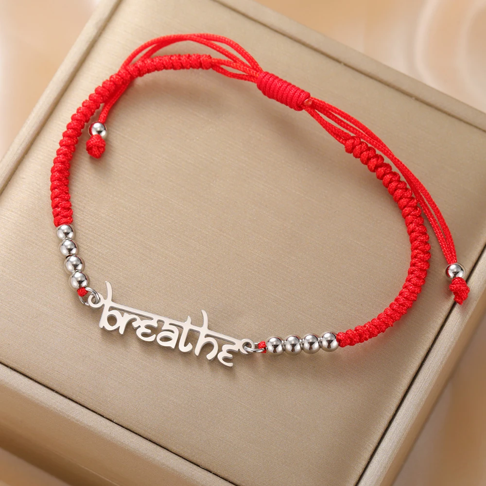 Step into a world of serene style with this this vibrant red woven bracelet featuring a stylish stainless steel chain. Designed to fit comfortably with an adjustable 17+5 cm length, it perfectly balances bold color with sleek metallic accents. The textured, braided red cord provides a tactile touch that grabs attention, while the shiny, silver-tone beads add elegance and contrast. At the center, a polished stainless steel charm displays meaningful symbols—the OM, Breathe, and Unalome—each representing calm, mindfulness, and spiritual growth. This bracelet seamlessly combines contemporary design with spiritual significance, making it a perfect accessory for yoga, meditation, or everyday inspirational wear. Its versatile style suits both men and women, elevating any look effortlessly.