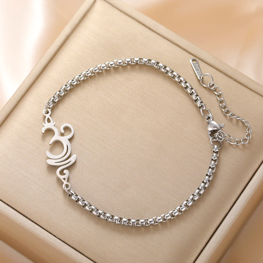 - The central charm features the OM, Breathe, and Unalome symbols, each meticulously crafted in polished stainless steel, reflecting light and enhancing visual appeal.