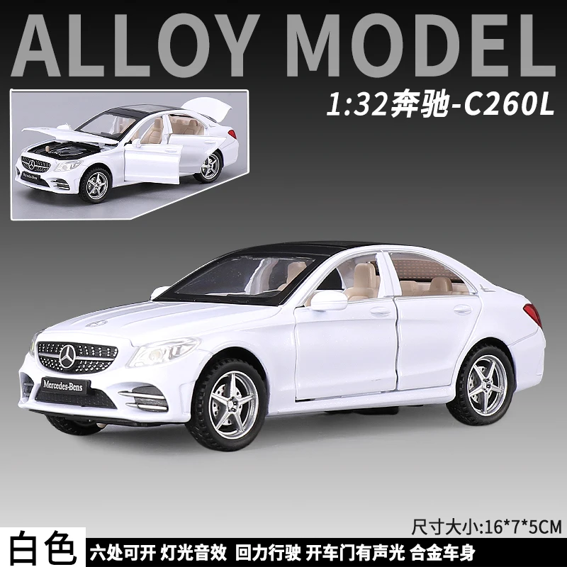 - Made of high-quality metal with a glossy red finish, providing durability and a sleek appearance, closely mimicking the authentic Mercedes Benz C260L design. Perfect for display or play.