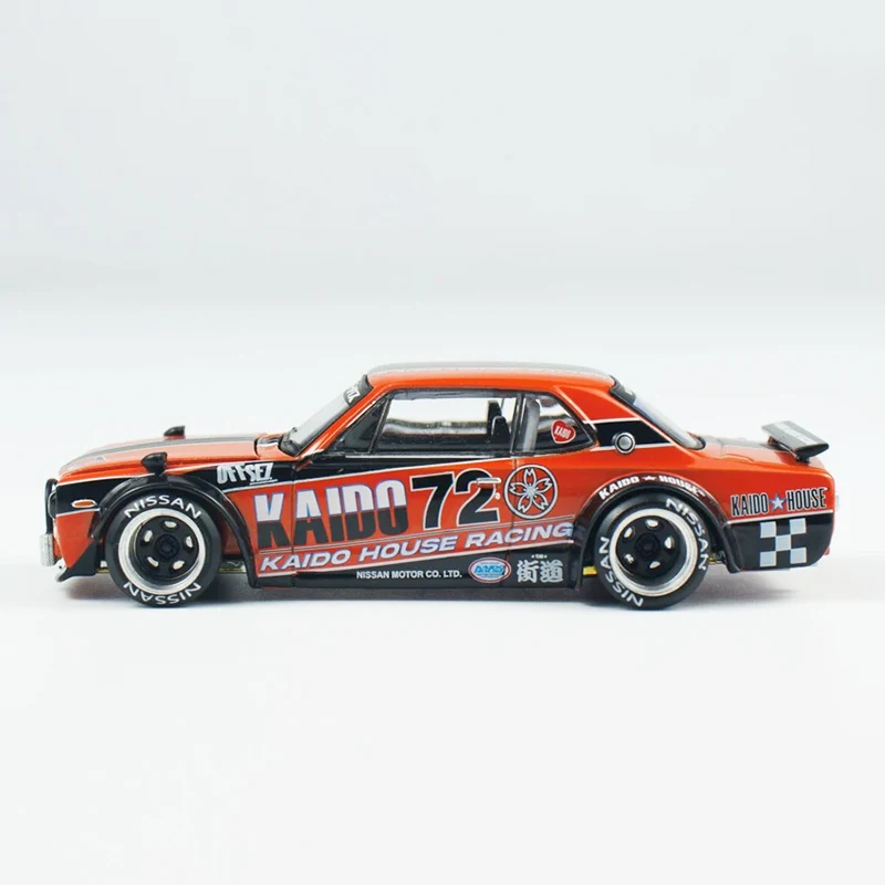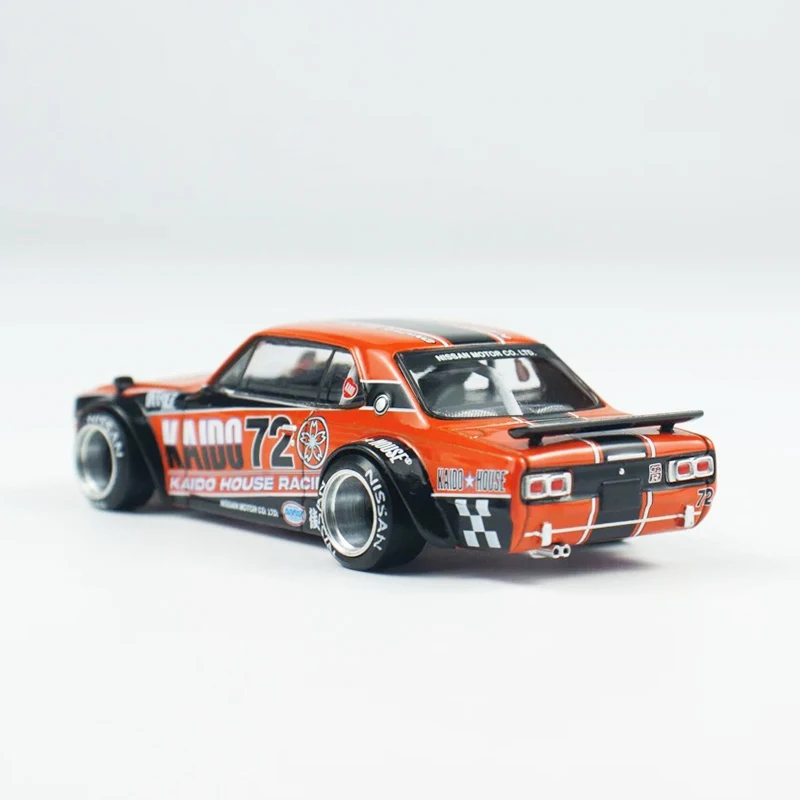 - This 1:64 scale diecast model features a vibrant red KHMG195 body with vivid black racing stripes, embodying the sporty racing spirit of the iconic Skyline GT-R KPGC10.
