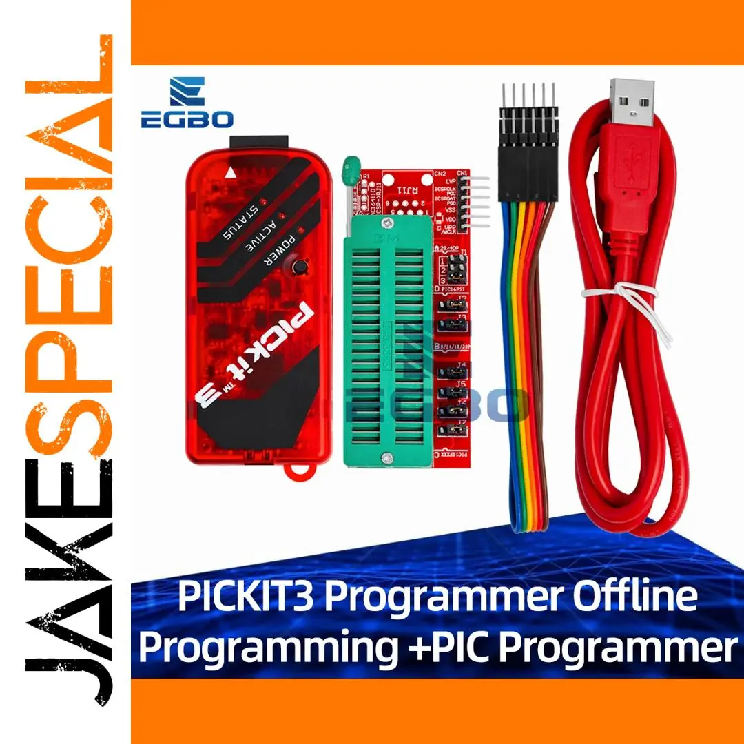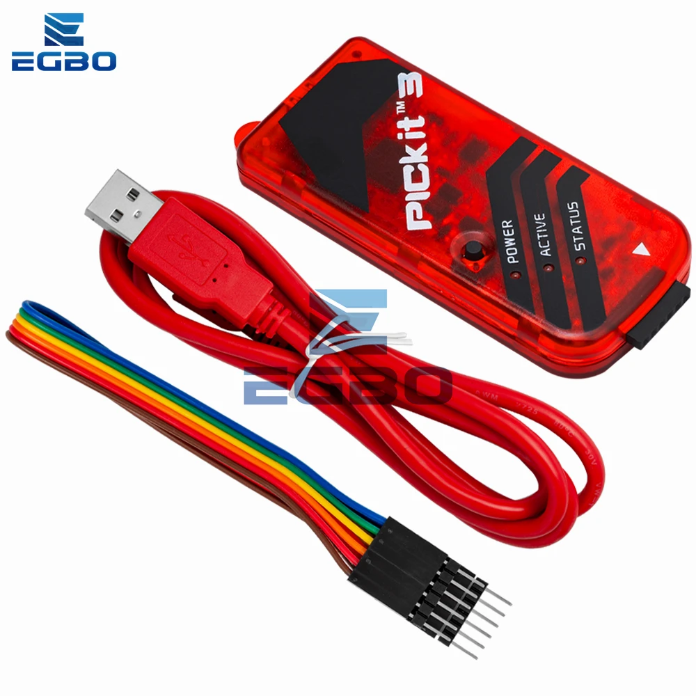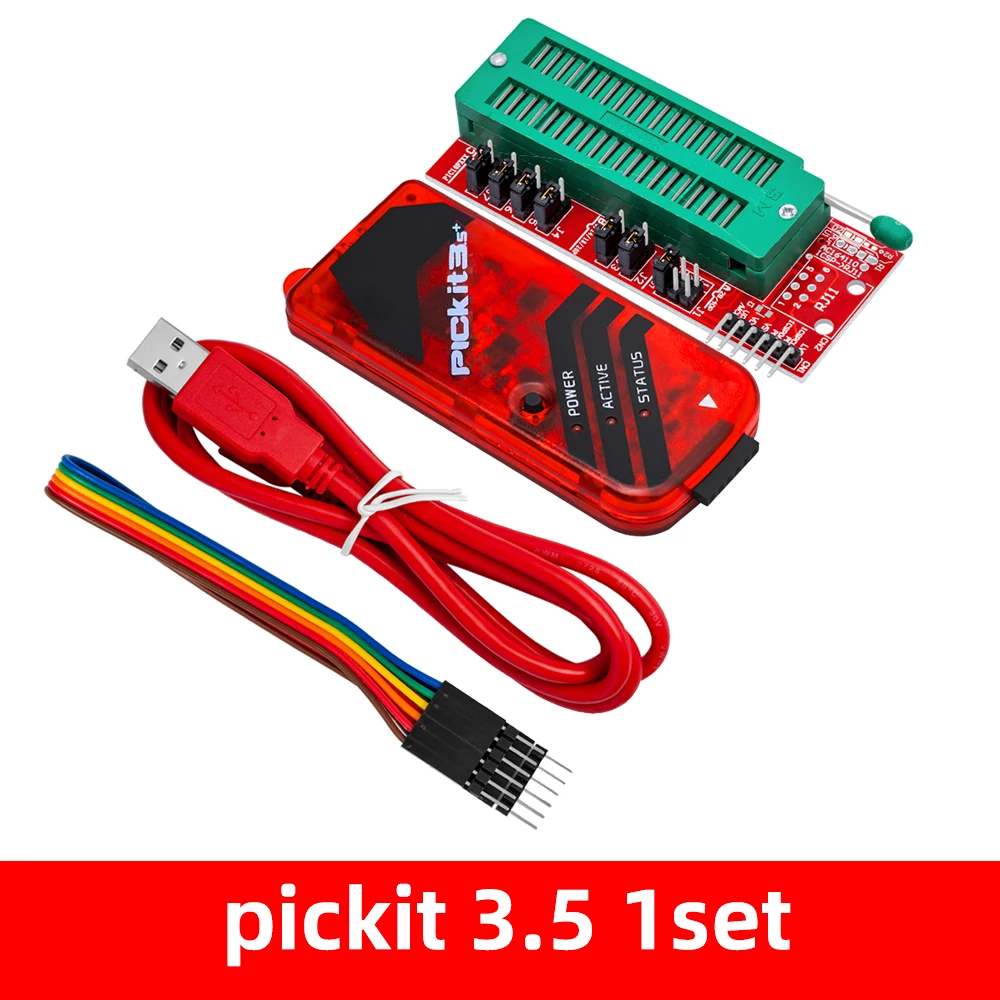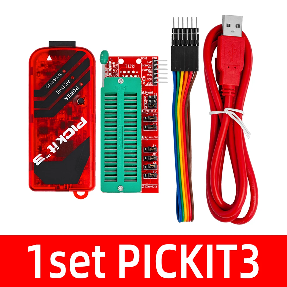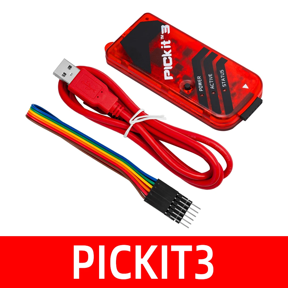 Experience reliable offline programming with the PIC KIT3 programmer, compatible with PICKIT3, PICKIT3.5, and related modules. Featuring a sleek, transparent red plastic enclosure with black accents and crisp white labeling, this new and customizable module ensures efficient microcontroller programming. It includes a versatile PIC programmer adapter seat suitable for SMD packages and supports a wide operating temperature range. Equipped with a multicolored ribbon cable and a textured red USB Type-A connector, this set offers organized connectivity and robust performance, making it an essential tool for developers and electronics enthusiasts seeking precision and quality in PIC microcontroller programming.