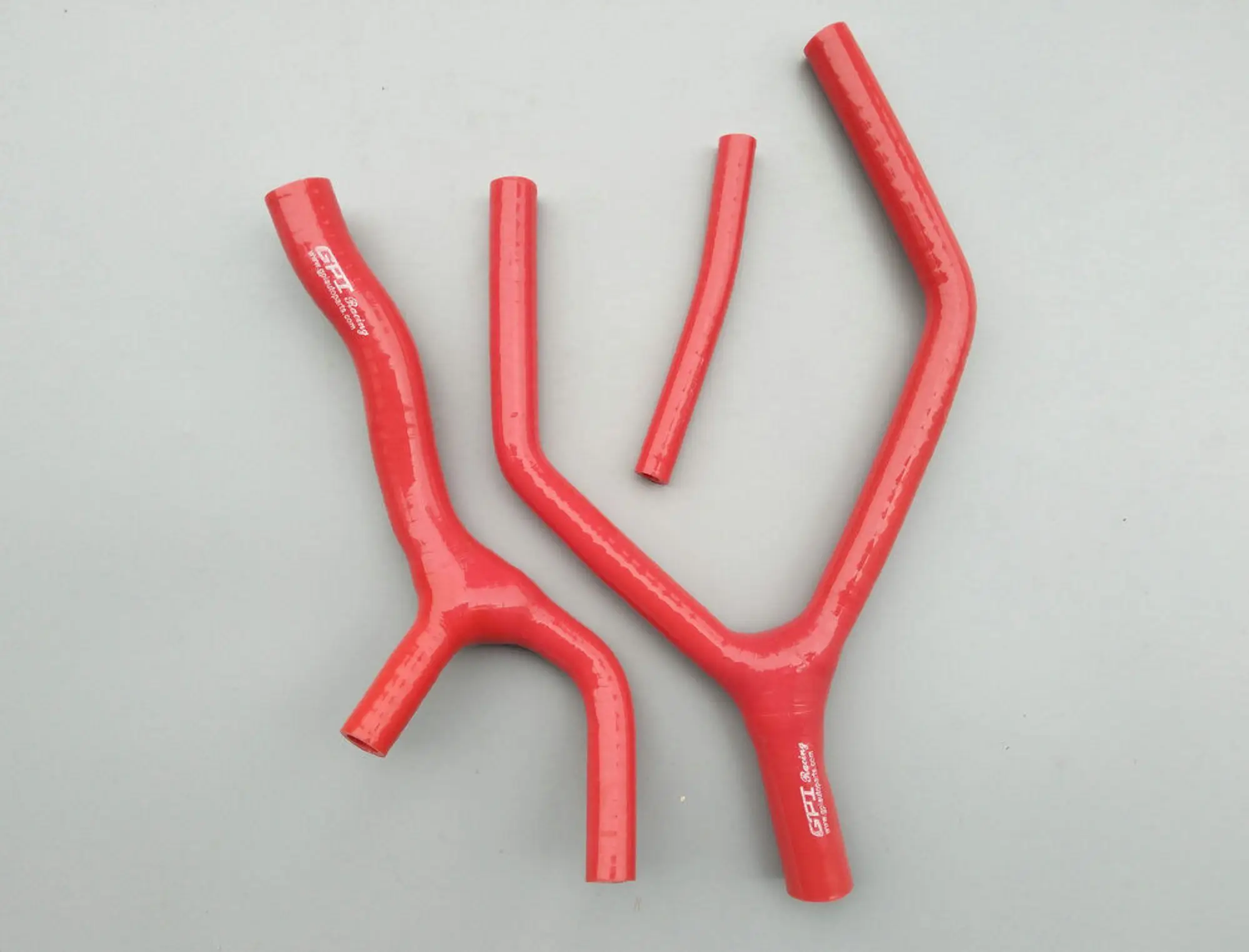 Transform your Yamaha YZ125 motorcycle with this high-quality silicone radiator hose kit, designed specifically for models from 1989 to 1991. Crafted from durable silicone with embedded heat-resistant fibers, these hoses withstand temperatures from -60°C to 260°C and pressures up to 0.9 MPa, ensuring reliable performance under strenuous conditions. The set includes a variety of shapes—Y-shape, curved, straight, and gentle bends—each with a smooth, glossy finish that not only enhances visual appeal but also promotes maximum airflow. The hoses' precise OEM fit guarantees straightforward installation, making maintenance easier and ensuring optimal cooling efficiency. Their vibrant red color adds a sporty, eye-catching touch that complements your motorcycle’s aesthetics.