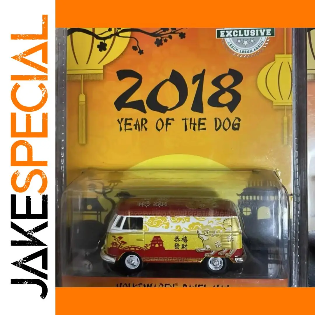 Experience the charm and nostalgia of this detailed diecast model of a Volkswagen T2 Van, now painted in eye-catching plated red with a shiny metallic finish. Perfectly capturing the iconic shape with rounded edges and a flat front, this model is enhanced with decorative graphics celebrating the Chinese Zodiac Year of the Dog 2018. The sides feature elegant black and gold Chinese characters and motifs, blending cultural richness with vintage aesthetics. The realistic hubcap wheels, textured black tires, and intricately molded roof rack add to its authenticity. Packaged beautifully in its original packaging, this collectible makes a perfect display piece. It’s an ideal gift for enthusiasts and collectors who appreciate detailed craftsmanship and cultural symbolism.