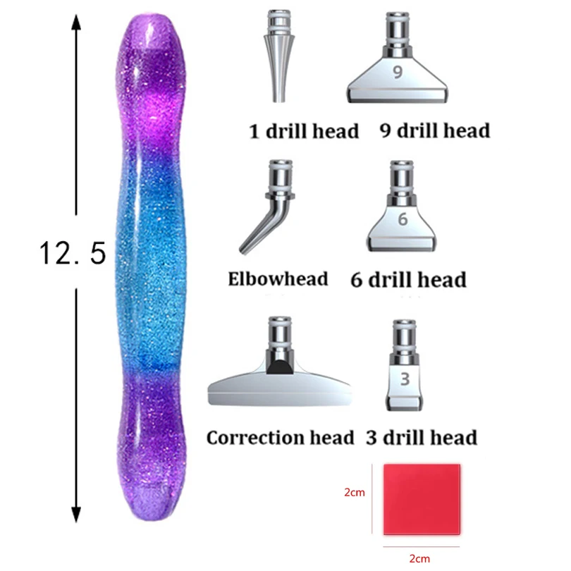 - Interchangeable alloy pen heads available in different sizes (3, 6, 9) and shapes, including round, square, and special-shaped tips, designed for precision diamond painting and nail art.