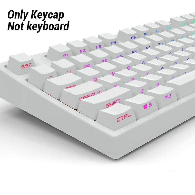 Transform your mechanical keyboard with this stunning set of colorful, backlit keycaps designed for enthusiasts who want to personalize their setup. Crafted from high-quality PBT material with double shot construction, these keycaps allow vibrant RGB lighting to shine through each translucent character, creating a mesmerizing glow in pink, purple, blue, and green hues. The slightly lower Cherry profile offers a sleek, modern aesthetic that complements most MX switches. Whether you have an 87, 104, or 108-key layout, this set seamlessly fits your keyboard, enhancing its visual appeal while maintaining durability and comfort. Elevate your typing experience and showcase your style by customizing your keyboard with these eye-catching keycaps.