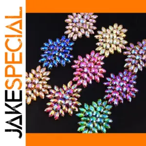 Imagine adding a touch of brilliance to your garments and accessories with this stunning rhinestone applique. Each flower-shaped design, measuring 4.5×4 cm, features shimmering crystal glass rhinestones with an iridescent AB finish, reflecting a spectrum of colors under light. The appliques are set on a durable gold-colored metal base with visible claws, making sewing easy and secure. Available in nine captivating shades—ranging from luminous pinks and purples to deep greens and blues—these appliques bring vibrant, luminous accents to wedding dresses, hats, shoes, and bags. Elevate your DIY projects with these eye-catching, jewel-like embellishments, creating truly unique and radiant fashion statements.