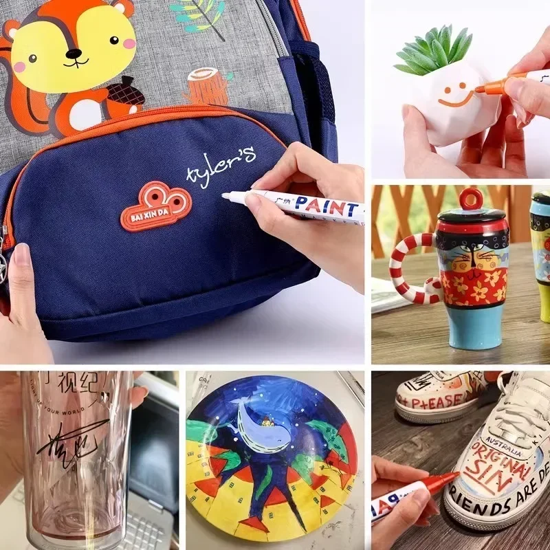 - Includes 6 vibrant, permanent oil-based markers in assorted colors like black, blue, coffee, gold, green, orange, pink, purple, red, silver, white, and yellow, perfect for versatile creative needs.