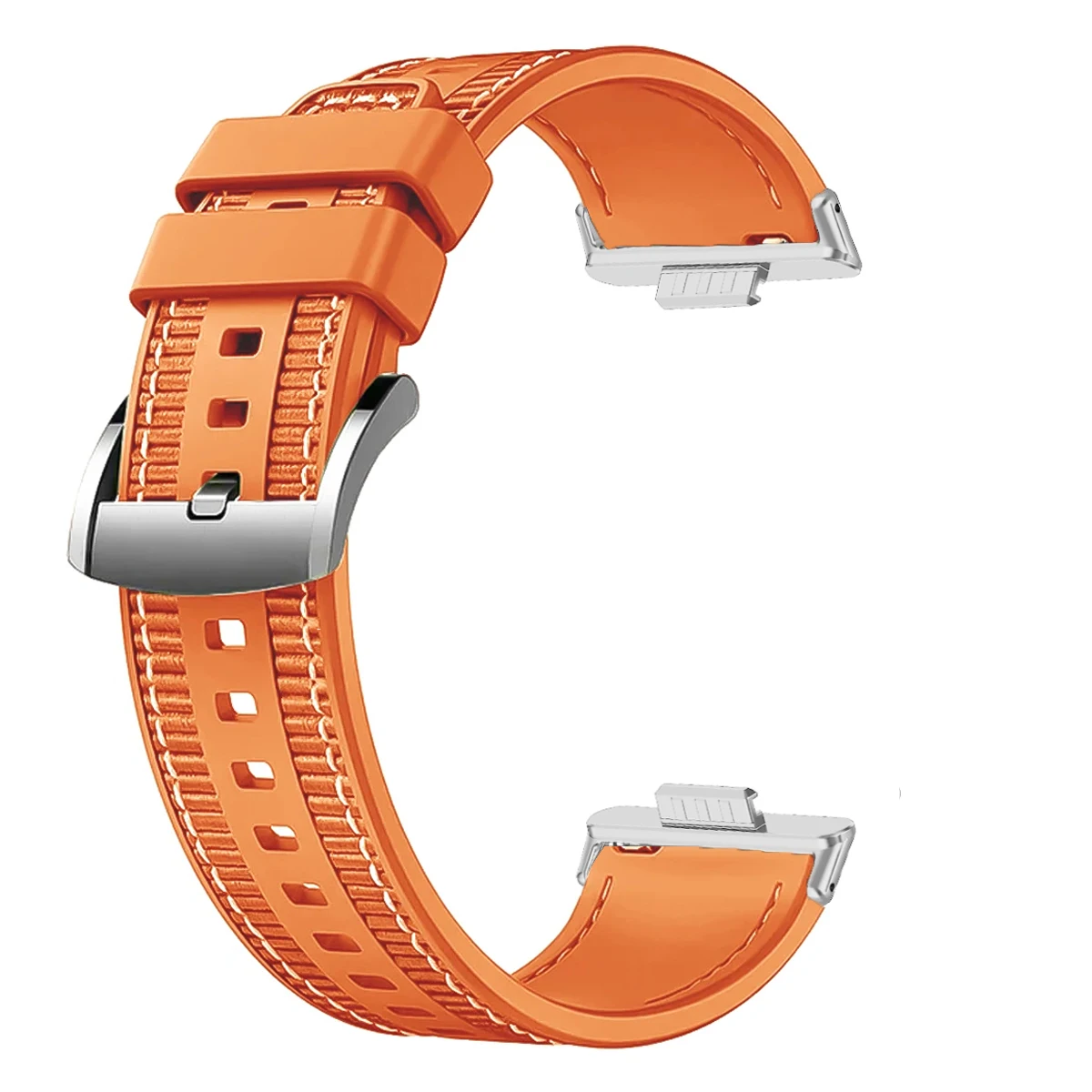 Elevate your Huawei Watch Fit series with this stylish and durable silicone replacement band. Designed specifically for Huawei Watch Fit 3, Fit 4, and Fit 4 Pro, this strap offers a perfect blend of comfort and sporty aesthetics. Its textured surface with parallel ridges enhances grip and adds a modern touch. Available in a variety of vibrant and subdued colors, you can easily match your style or mood. The adjustable holes ensure a snug fit for active lifestyles, whether you're working out or going casual. Made from high-quality silicone, it's lightweight, flexible, and built to withstand daily wear. Hassle-free attachment with concealed lugs makes changing your look quick and easy, keeping your smartwatch secure during all your activities.