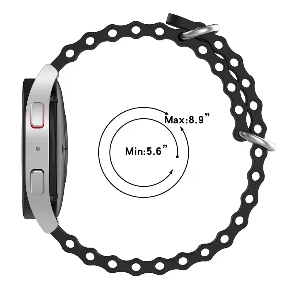 - Features evenly spaced round perforations along its 22mm width, providing optimal ventilation and a sporty, modern look that reduces sweat buildup.