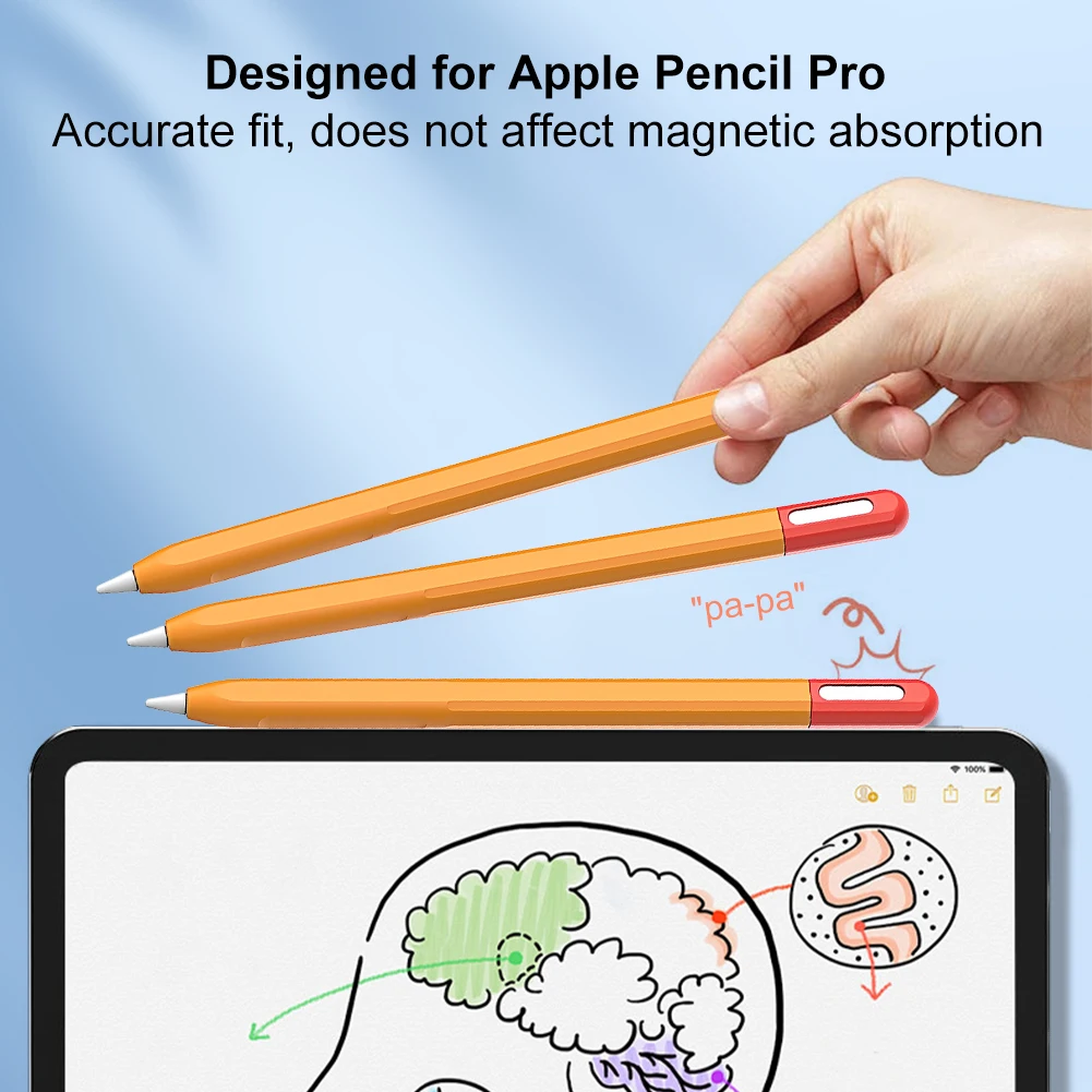 Enhance your Apple Pencil experience with this sleek, ultra-thin silicone protective cover designed for Apple Pencil Pro and USB-C models. Measuring 168.00 x 10.50 x 10.50 mm, this soft silicone sleeve offers a comfortable all-day grip while safeguarding against scratches and wear. Its minimalistic design preserves double-tap functionality and charging ease, provided your iPad case permits. Easy to install by gently pressing onto the stylus, it is available in stylish colors including Gray Pro, Gray USB C, Orange Pro, Orange USB C, Purple USB C, White Pro, and White USB C. The package includes a silicone sleeve and a matching pencil cap, combining practicality and vibrant style.