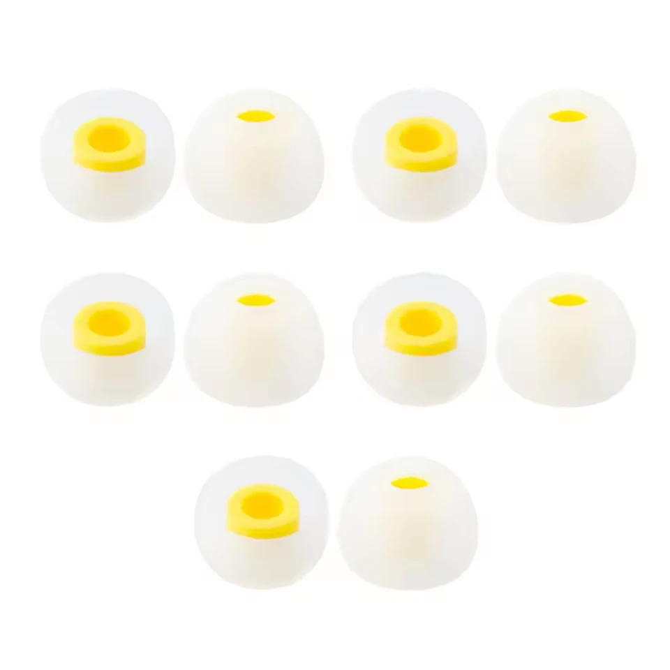 Experience superior comfort and sound quality with this set of the latest silicone ear tips designed specifically for KBEAR TRI earphones. Crafted from baby nipple-grade, environmentally friendly silicone, these tips feature a sleek, rounded, tapered shape that mimics the natural ear canal for an ergonomic fit. Available in five vibrant colors—red, blue, white, yellow, and black—and various sizes (S, M-, M, M+, and L), they provide a personalized, snug fit for different ear sizes. Their internal bore contrast adds a visual appeal while ensuring optimal noise isolation. These tips enhance vocal clarity, improve mid and high frequency details, and deliver a transparent, immersive listening experience, making every moment with your music more enjoyable and pressure-free.