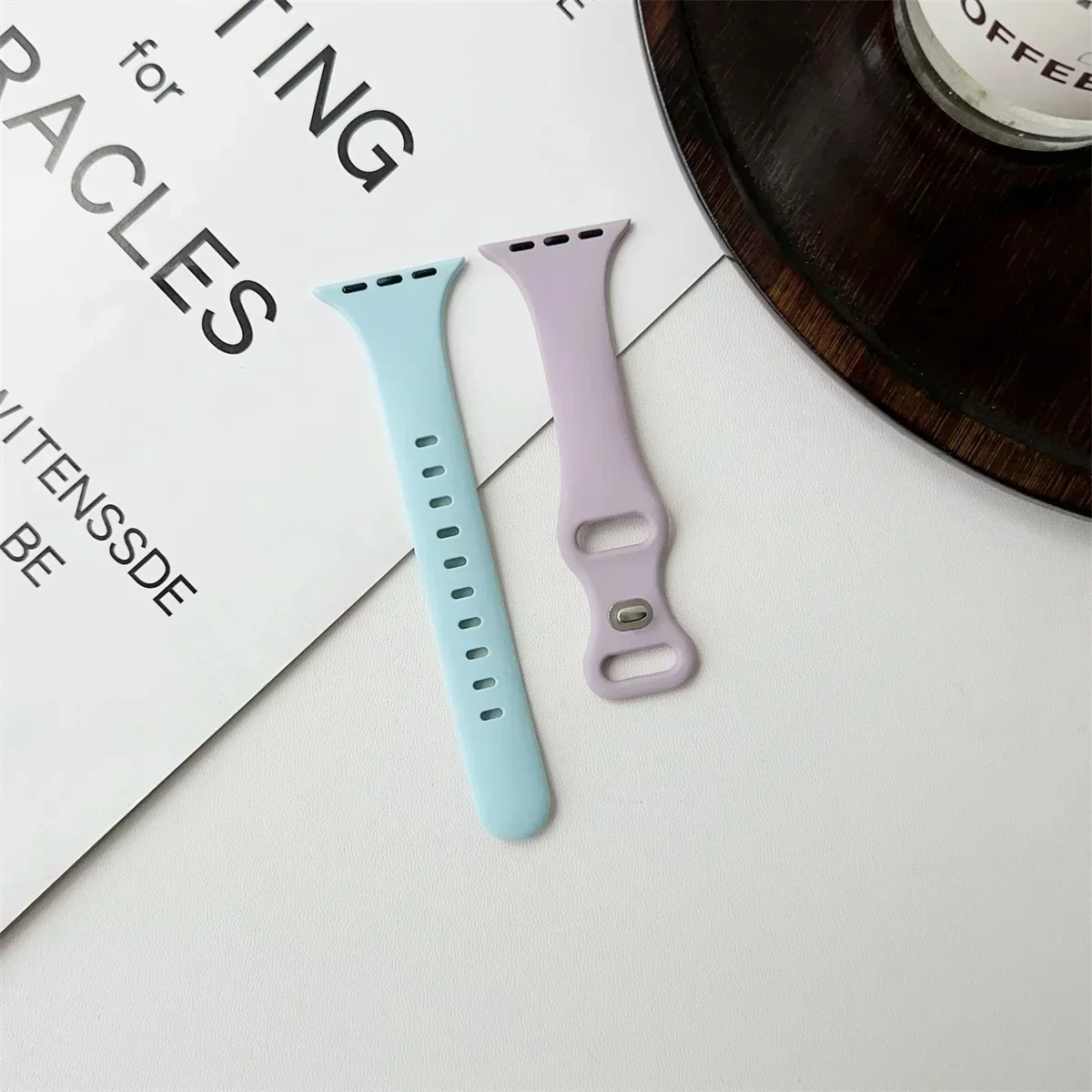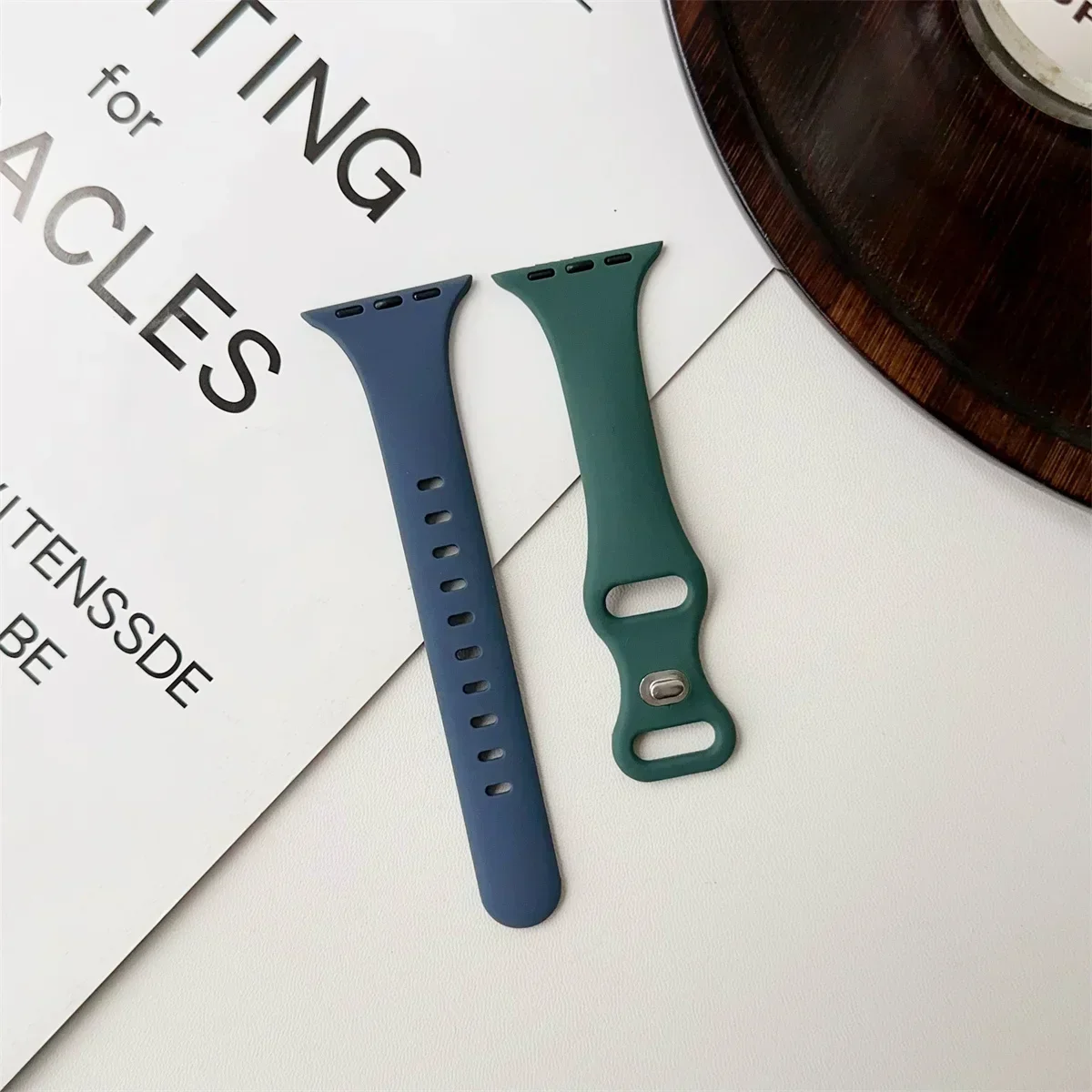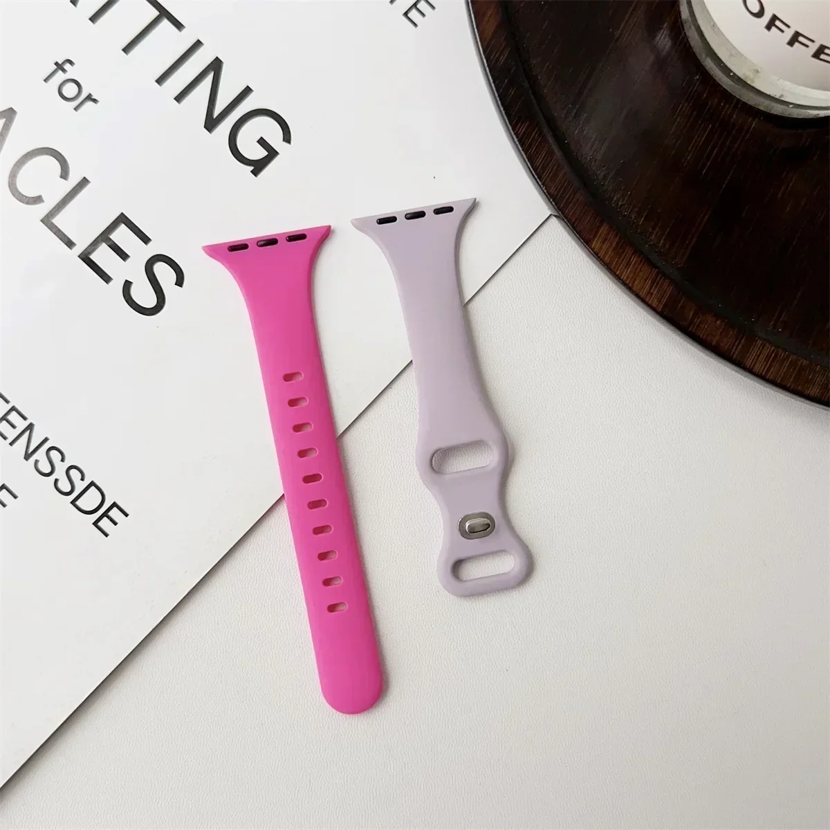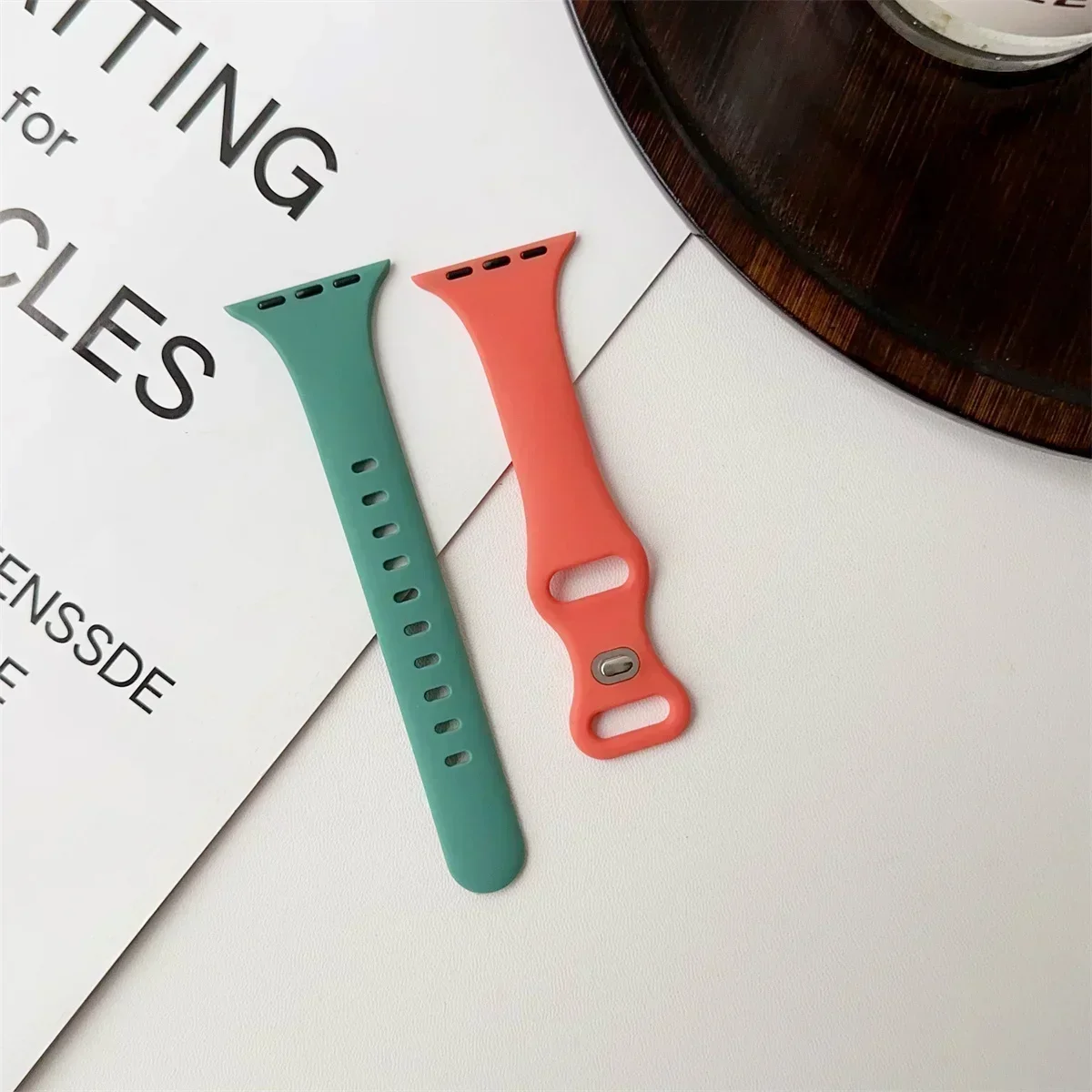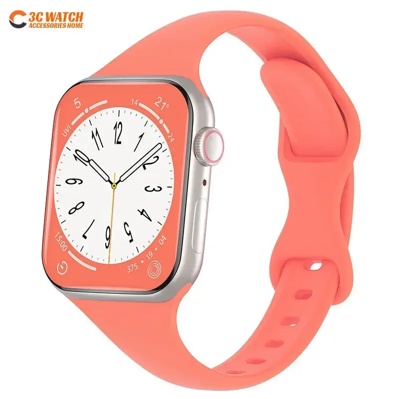 Discover the perfect companion for your Apple Watch with this sleek silicone strap, designed to blend comfort and modern aesthetics. Crafted from high-quality, skin-friendly rubber, it offers exceptional flexibility, durability, and lightweight wearability for everyday use. The minimalist style features a slim profile, smooth surface, and vibrant solid colors, including hibiscus, pink green orange, blue grey milk tea, yellow, and coral—allowing you to personalize your look effortlessly. The strap is easy to install, with multiple adjustment holes for a snug, customizable fit that stays secure during all your activities. Whether casual, sporty, or stylish, this strap complements your lifestyle, making your watch more versatile and fashionable.