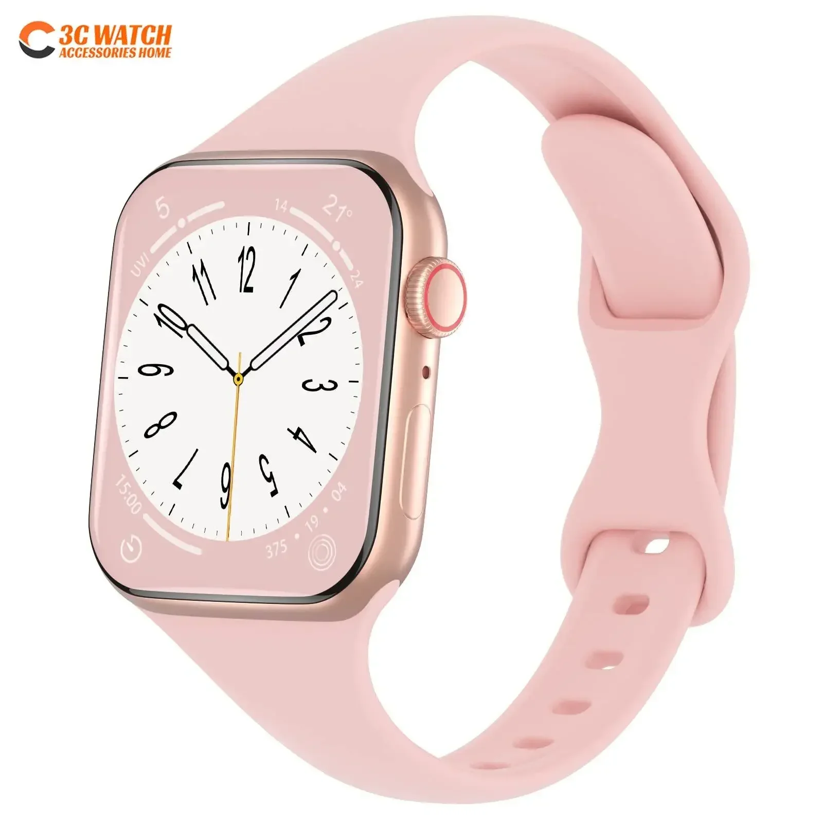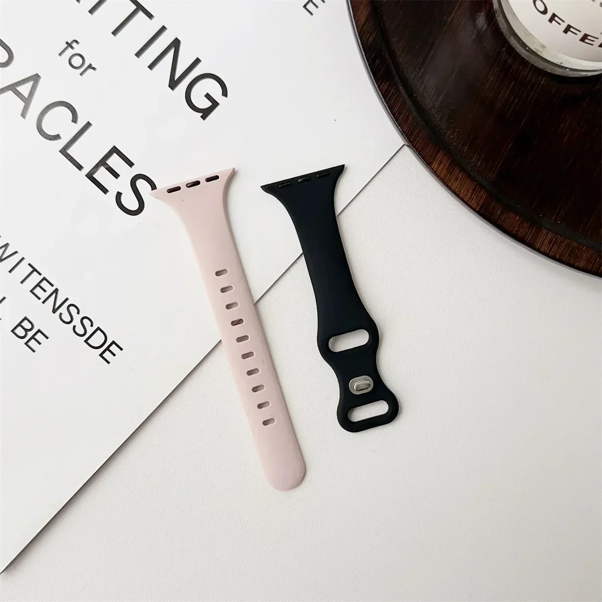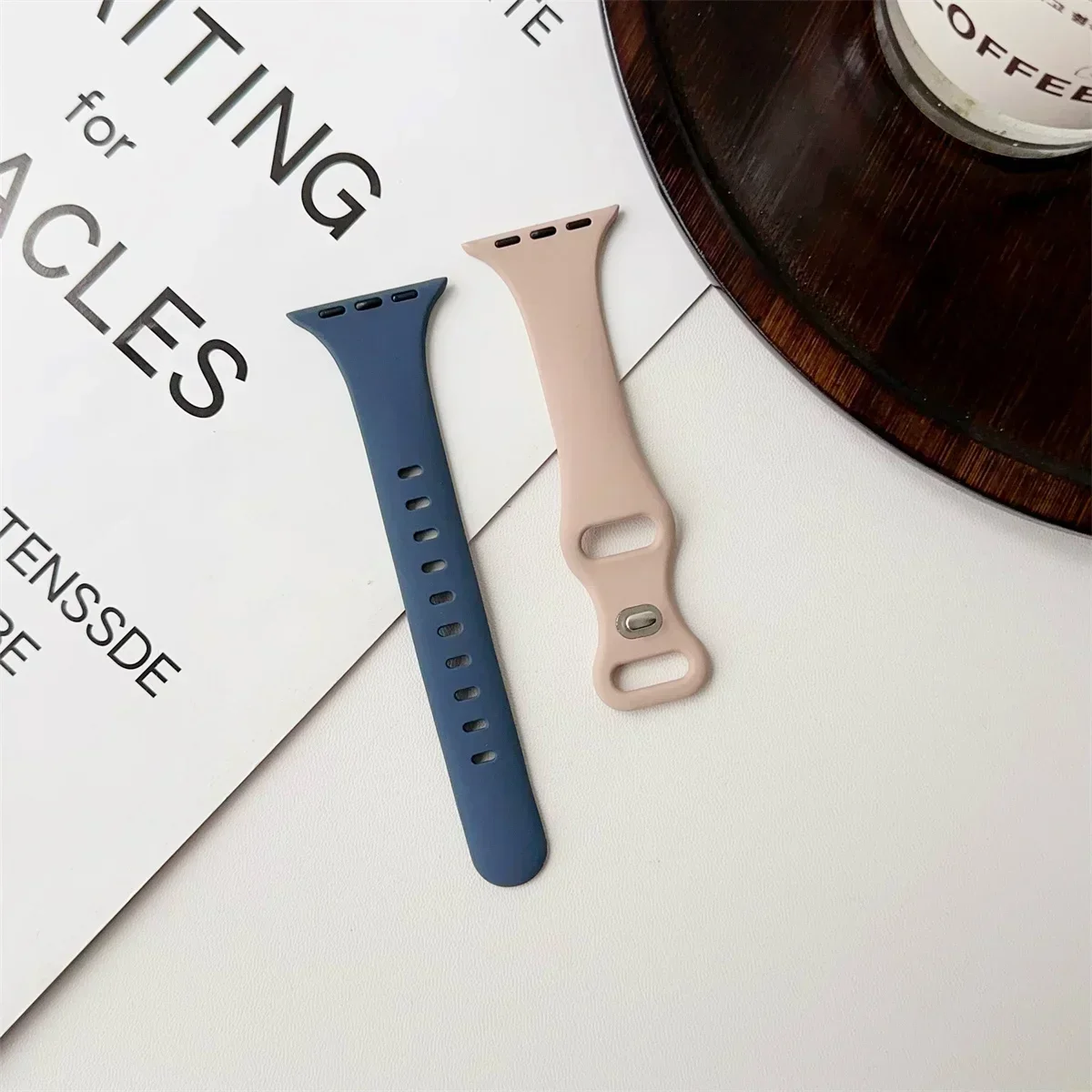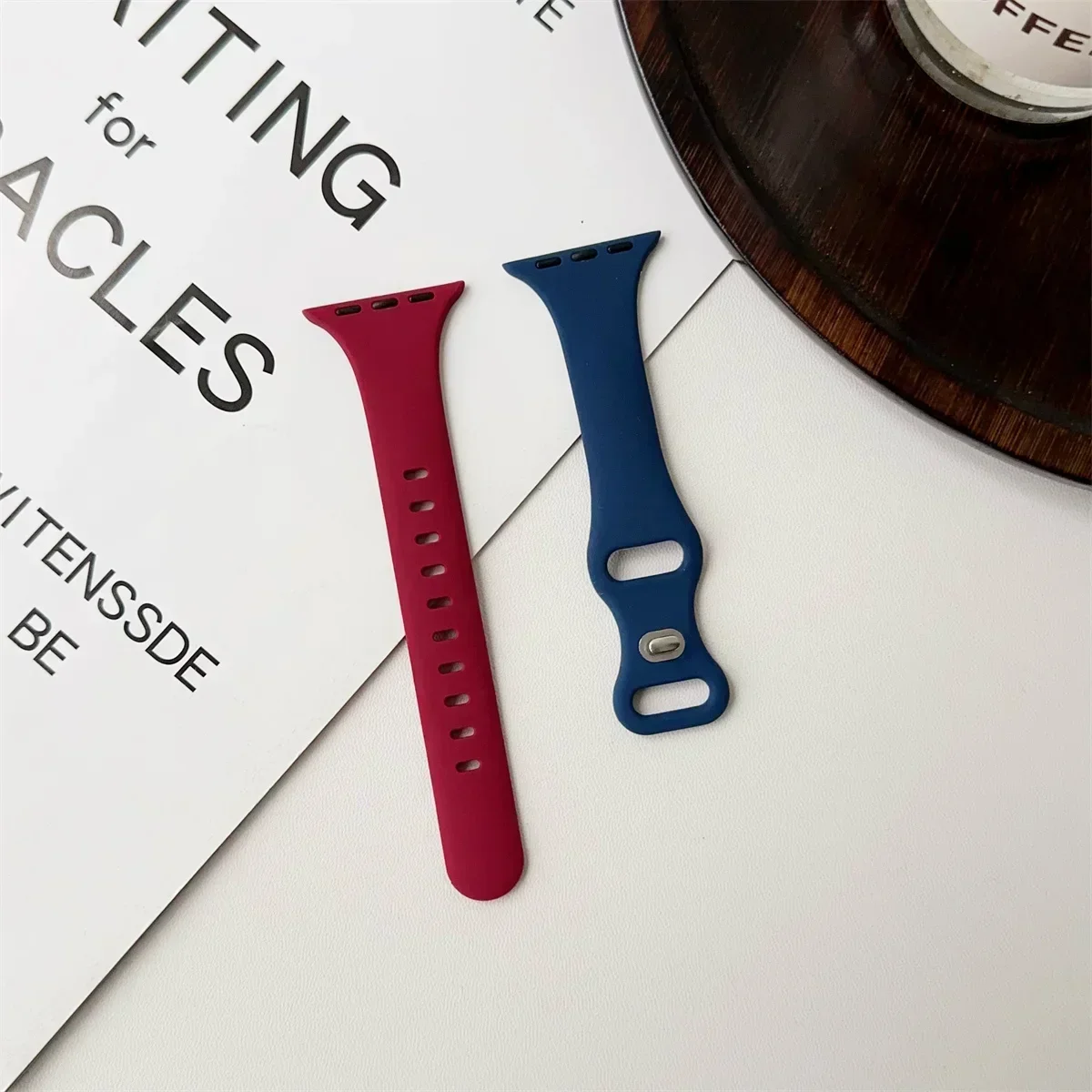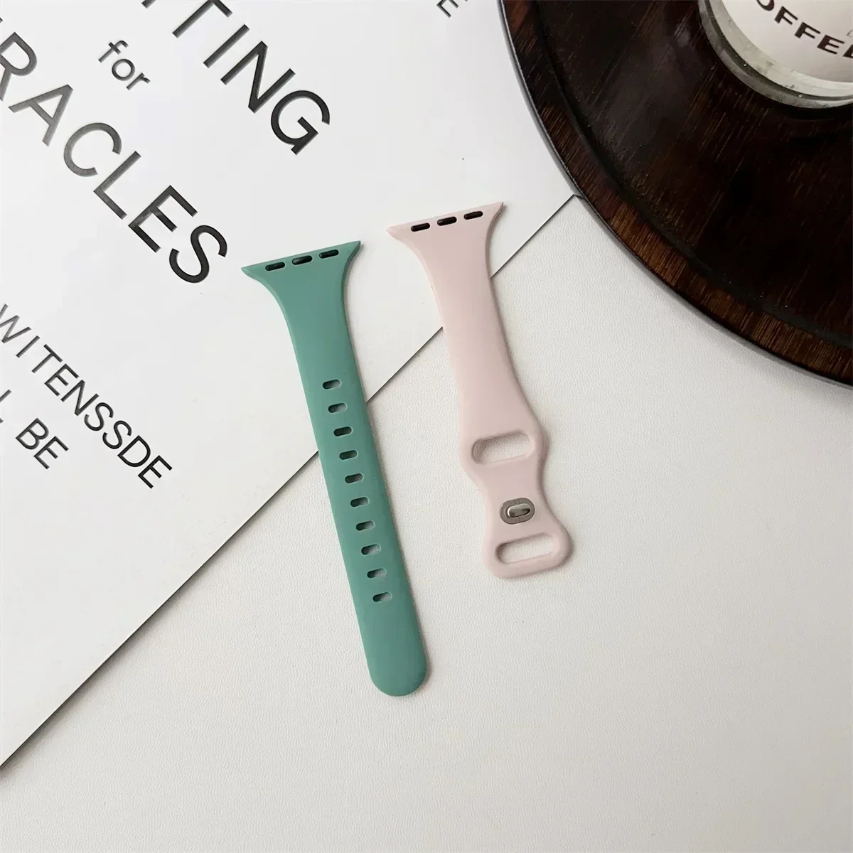 Discover the perfect companion for your Apple Watch with this sleek silicone strap, designed to blend comfort and modern aesthetics. Crafted from high-quality, skin-friendly rubber, it offers exceptional flexibility, durability, and lightweight wearability for everyday use. The minimalist style features a slim profile, smooth surface, and vibrant solid colors, including hibiscus, pink green orange, blue grey milk tea, yellow, and coral—allowing you to personalize your look effortlessly. The strap is easy to install, with multiple adjustment holes for a snug, customizable fit that stays secure during all your activities. Whether casual, sporty, or stylish, this strap complements your lifestyle, making your watch more versatile and fashionable.