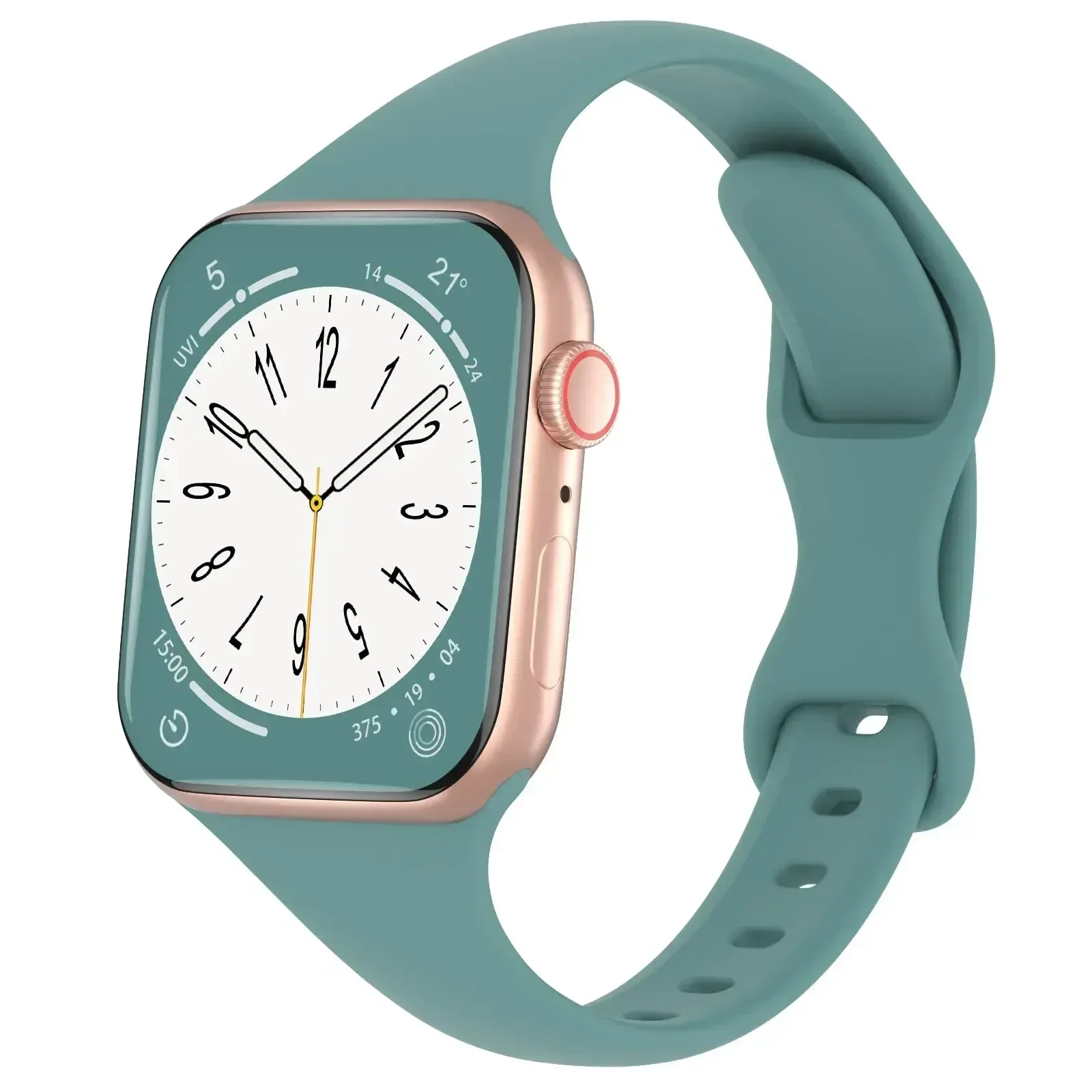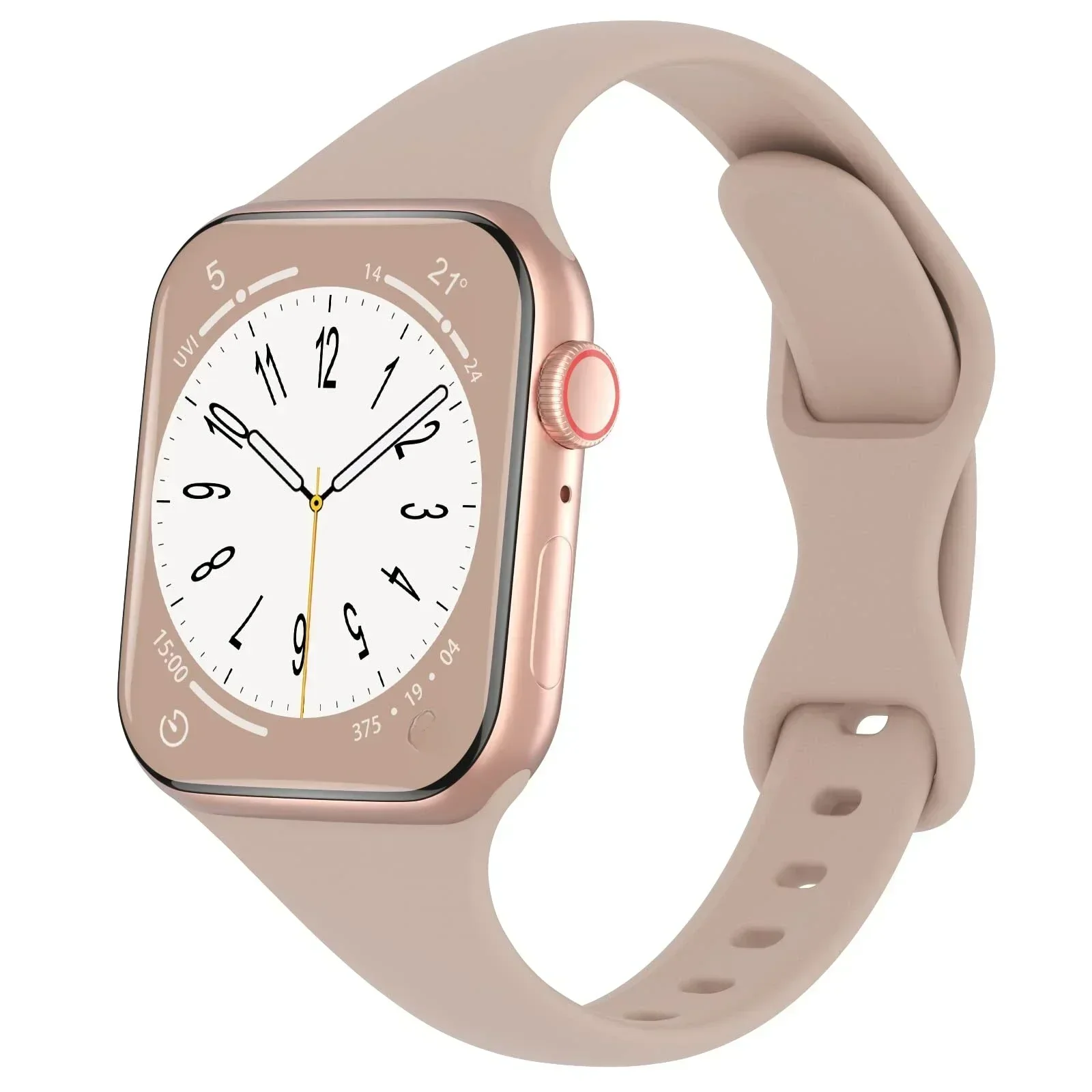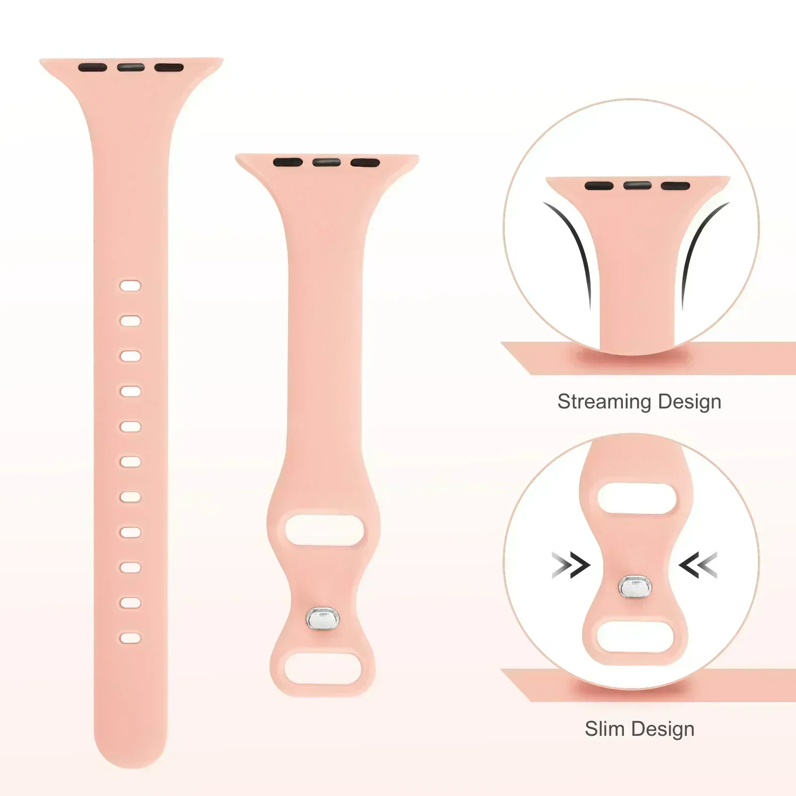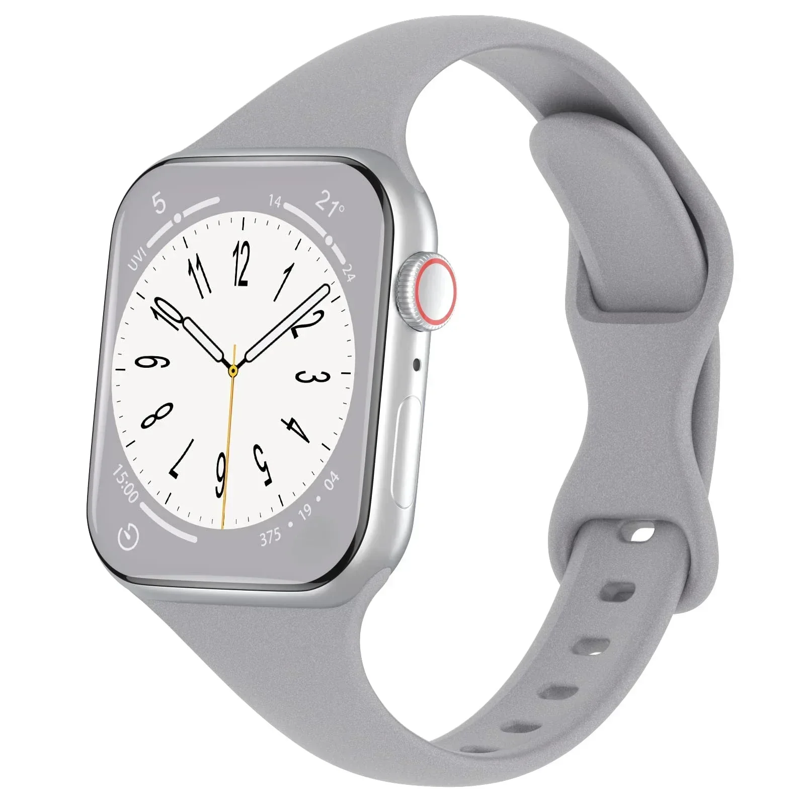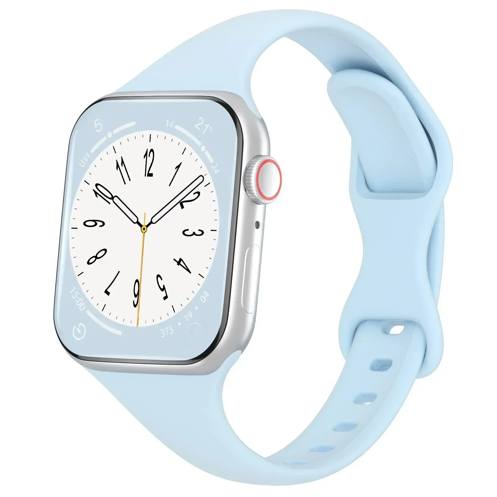 Discover the perfect companion for your Apple Watch with this sleek silicone strap, designed to blend comfort and modern aesthetics. Crafted from high-quality, skin-friendly rubber, it offers exceptional flexibility, durability, and lightweight wearability for everyday use. The minimalist style features a slim profile, smooth surface, and vibrant solid colors, including hibiscus, pink green orange, blue grey milk tea, yellow, and coral—allowing you to personalize your look effortlessly. The strap is easy to install, with multiple adjustment holes for a snug, customizable fit that stays secure during all your activities. Whether casual, sporty, or stylish, this strap complements your lifestyle, making your watch more versatile and fashionable.