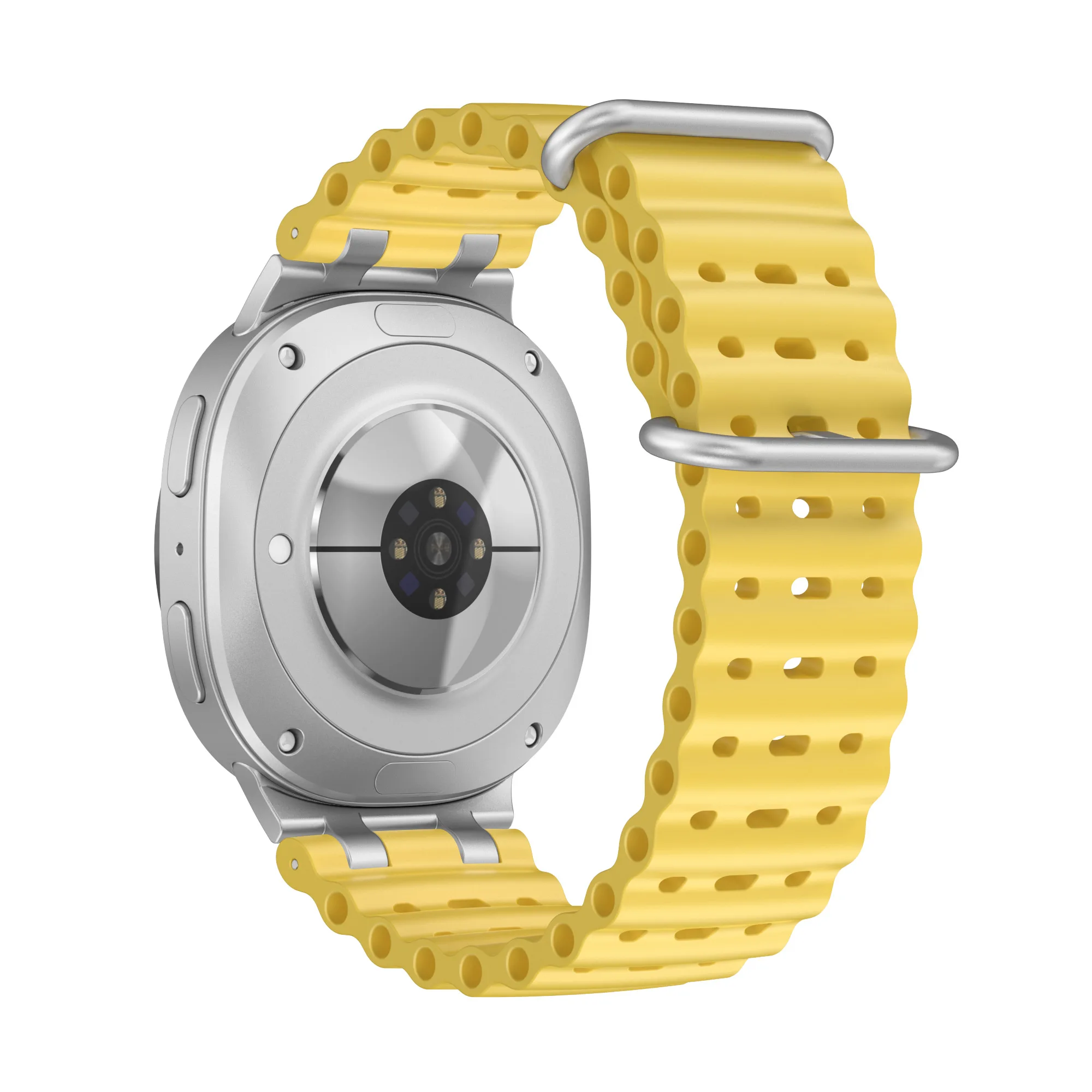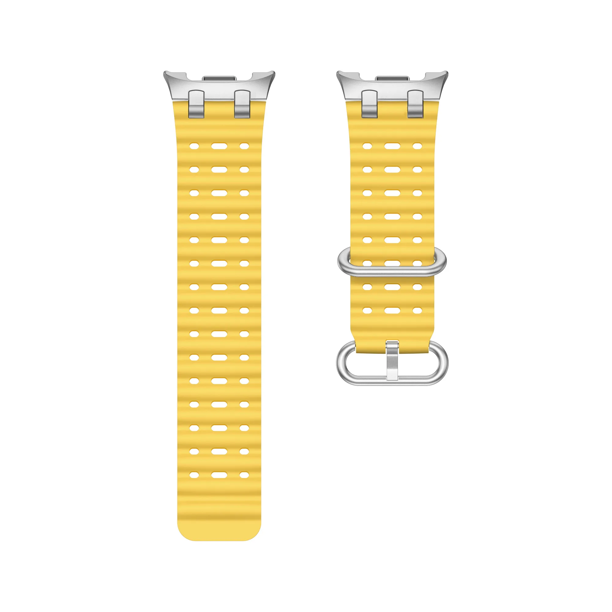 Experience the perfect blend of style and comfort with this vibrant silicone sports strap designed specifically for Samsung Galaxy Watch models. Crafted from high-quality, breathable silicone, the strap ensures maximum comfort during active wear while providing a durable and flexible fit. Its textured, perforated surface with oval-shaped holes promotes ventilation, making it ideal for sports and everyday use. Available in bold colors such as yellow, orange, gray, white, and black, you can customize your look easily. The premium design features a sturdy metal connector matching the strap color, along with a traditional silver buckle clasp for secure adjustment. Whether for fitness or fashion, this strap elevates your smartwatch experience with its sporty, modern aesthetic.