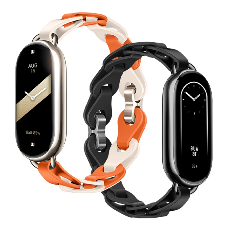 Enhance your Xiaomi Mi Band 8, 9, or 10 NFC with this high-quality silicone watchband, designed for a secure and comfortable fit. Available in vibrant colors including black, blue, brown, gray, pink, white, red, orange, and purple, this unisex strap features a durable silicone chain link design that is flexible and stylish. Crafted from premium materials, it offers a touch of modern elegance while ensuring long-lasting wear without harmful chemicals. The watchband’s precise width fits Mi Band 8, 9, and 10 NFC models perfectly, making it an ideal accessory to customize your fitness tracker and elevate your everyday look.