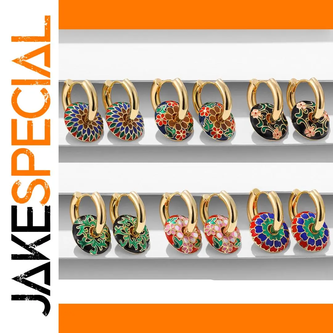 - Design features chunky, round hoops with lively floral painted enamel charms, accented with energetic oil drip texture to catch enviable attention.