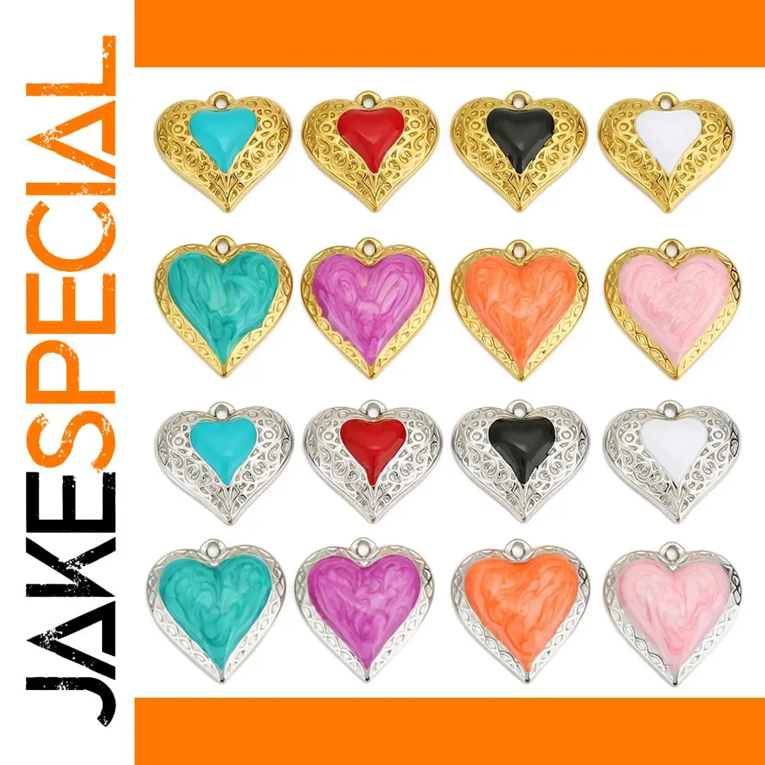 Discover the charm and versatility of this colorful stainless steel jewelry findings set, perfect for crafting your personalized accessories. Featuring four eye-catching enamel pendants in heart and flower shapes, these charms are designed to elevate your jewelry projects with their lively colors and intricate details. Each pendant boasts a glossy, marbled enamel fill in vibrant shades such as turquoise, red, black, white, teal, purple, orange, and pink. Available in both gold-tone and silver-tone metal finishes, these charms add a touch of elegance and playfulness to your necklaces, bracelets, or earrings. Lightweight and durable, they are easy to attach and ideal for creating unique, high-quality jewelry pieces tailored to your style. Let your creativity flow with these charming connectors.