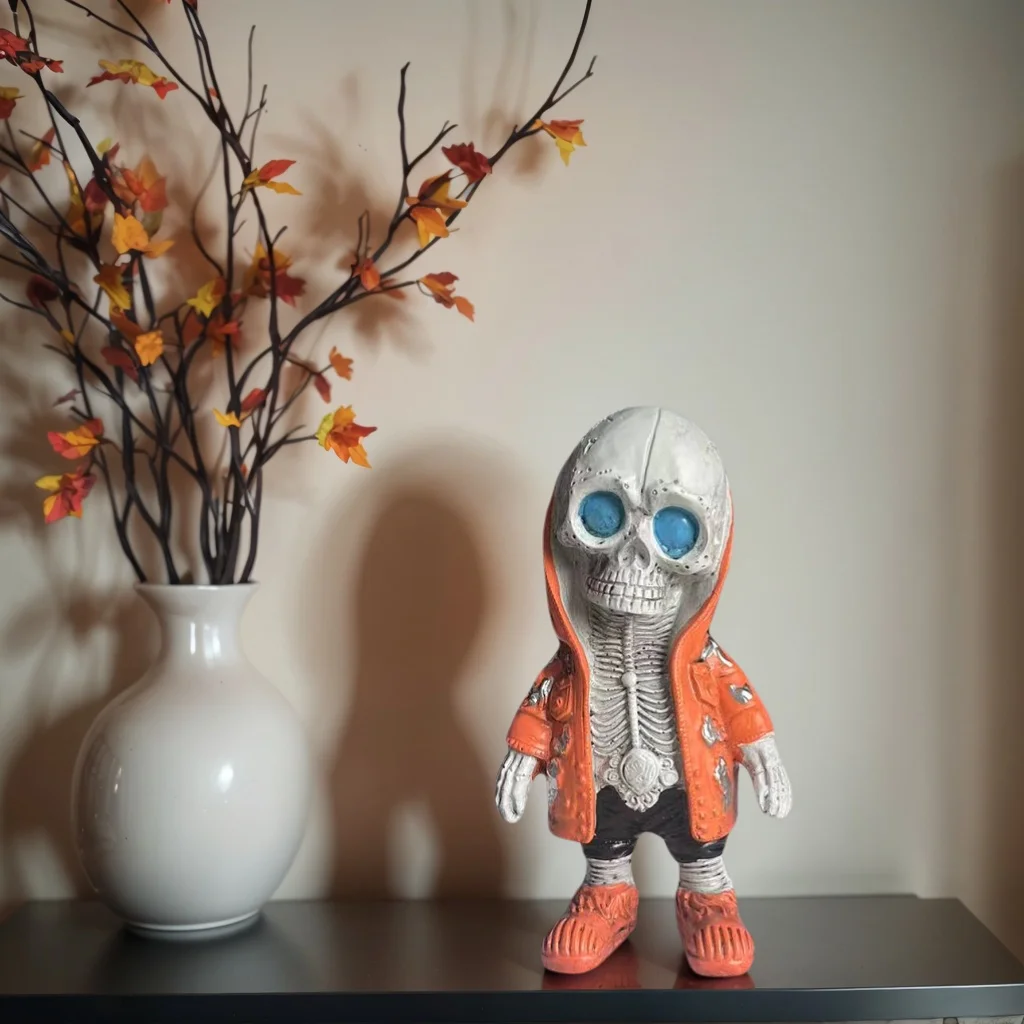 Seize the chance to own this unique, rebellious skeleton ornament that embodies youthful street fashion and dark aesthetics. Its bold colors and vintage details are sure to catch every eye and express your personality. Whether you’re decorating for Halloween, adding character to your collection, or seeking a cool desk companion, this piece offers versatility and style. Embrace the cyber-dark vibe that transforms any environment into an underground urban scene, and let this trendy skull become your statement accessory. Act now to elevate your decor with attitude and high-end street style—your space deserves it!