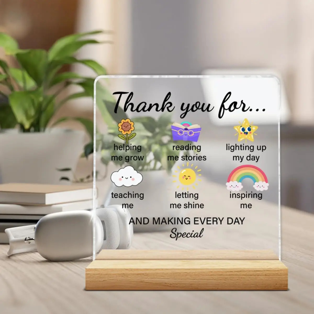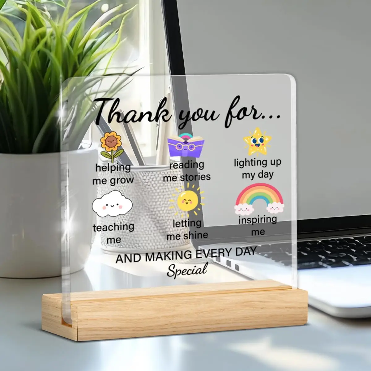 Imagine the smile on your teacher’s face when they receive this vibrant gratitude plaque. It’s more than a simple gift—it’s a heartfelt expression of appreciation that they will cherish forever. Whether celebrating the end of a school year, a birthday, or just saying thanks, this charming token will brighten any teacher’s day. Make your message unforgettable with this beautifully designed plaque that combines thoughtful design, quality materials, and emotional impact. Don’t wait—show your gratitude today and create a lasting memory for someone who makes a difference.