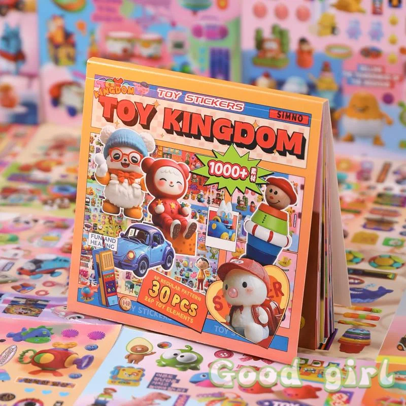 Step into a world of imagination with this colorful Toy Kingdom sticker book designed for children aged 12 and above. Featuring 30 sheets of bright, lively cartoon stickers, this set includes over 1000 playful toy characters and objects to brighten any scrapbook, diary, or craft project. Each sheet showcases cheerful animals like a sheep with glasses, a smiling bear, and a boy with a red hat, all rendered in soft, rounded, friendly shapes. The bold, three-dimensional typography and star accents make the cover visually engaging, inspiring creativity. Lightweight at only 40 grams and measuring 28 centimeters long, it offers a fun, easy way to personalize your creative projects while improving fine motor skills and aesthetic sense with safe, color-rich designs.