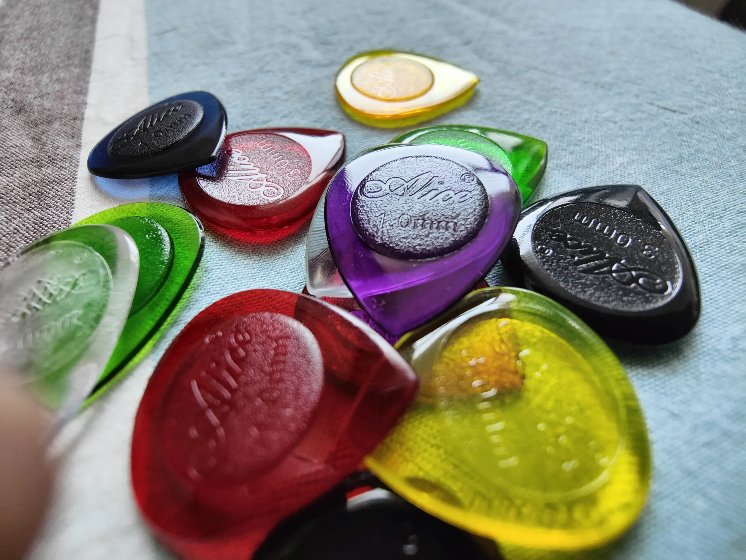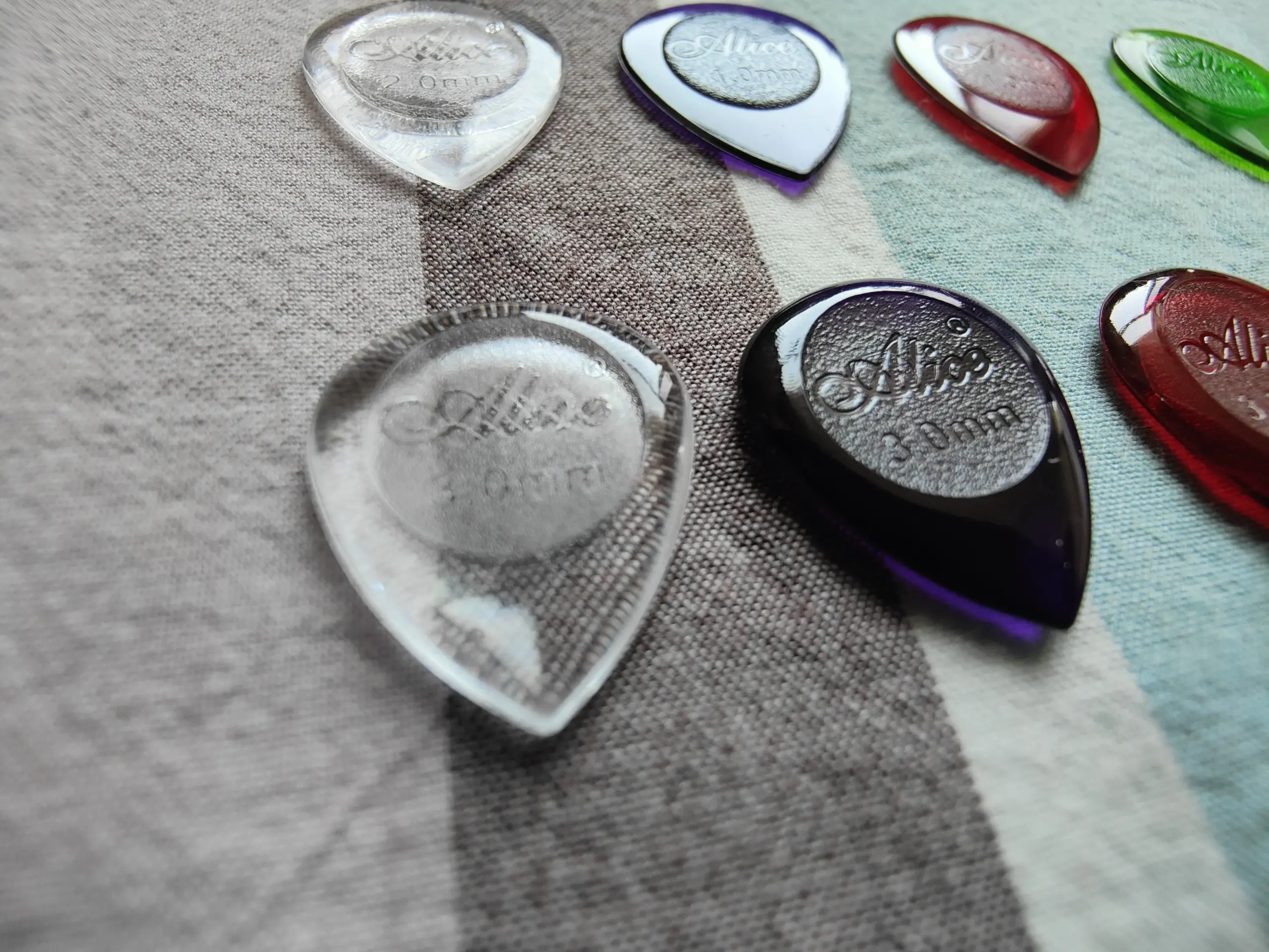 Experience versatile sound with this set of three high-quality guitar picks crafted from transparent plastic, featuring a thickness range of 1mm to 3mm for customized playability. Perfectly compatible with acoustic, electric, bass, and ukulele guitars, these picks feature a sleek, triangular design with rounded edges for comfortable grip and precise control. Their smooth, glossy finish enhances the vibrant, translucent colors—including black, yellow, green, purple, red, and clear—adding a modern and eye-catching aesthetic to your playing. Whether for practice or performance, these durable picks elevate your musical expression with style and dependability, making them an essential addition to any guitarist’s collection.