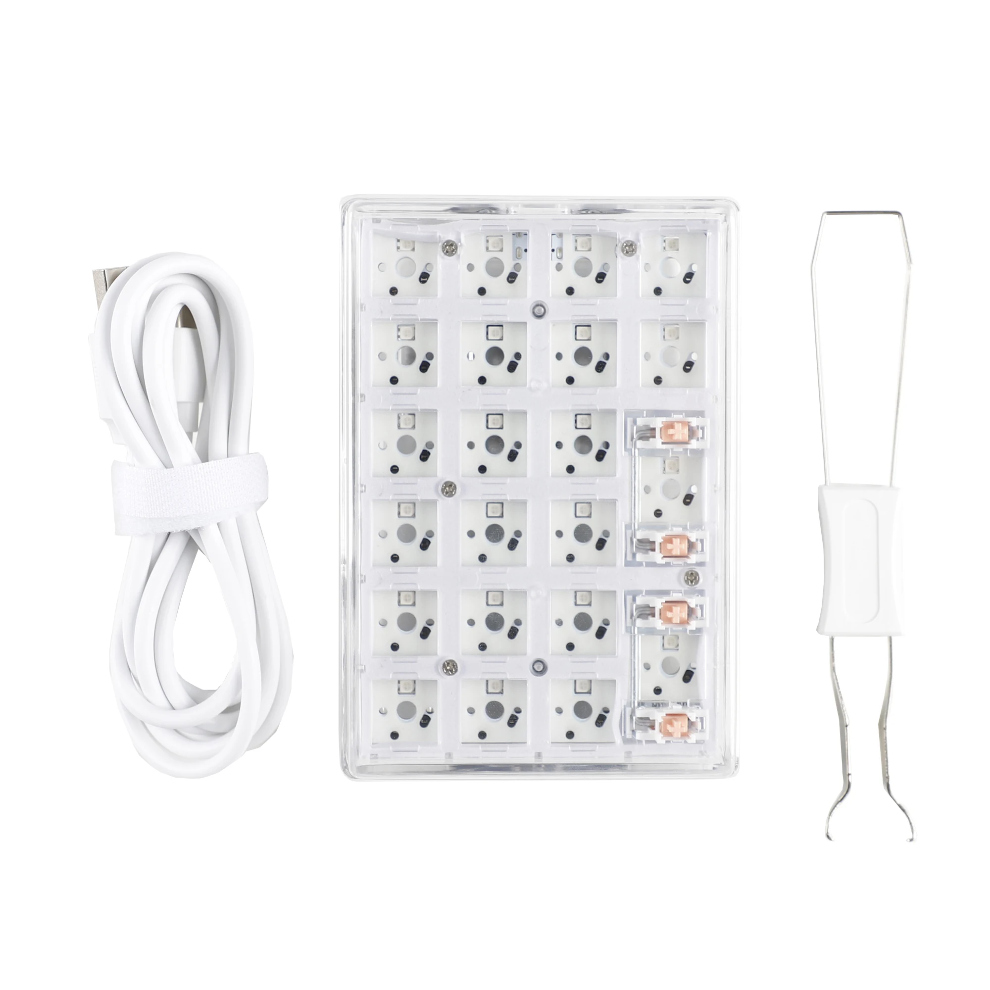- Includes EVA foam for noise reduction around the PCB and switch pad, ensuring quieter operation and added protection within the transparent case, along with a comprehensive base kit.