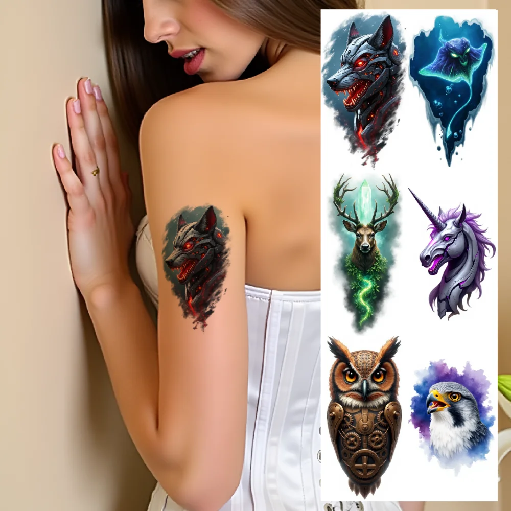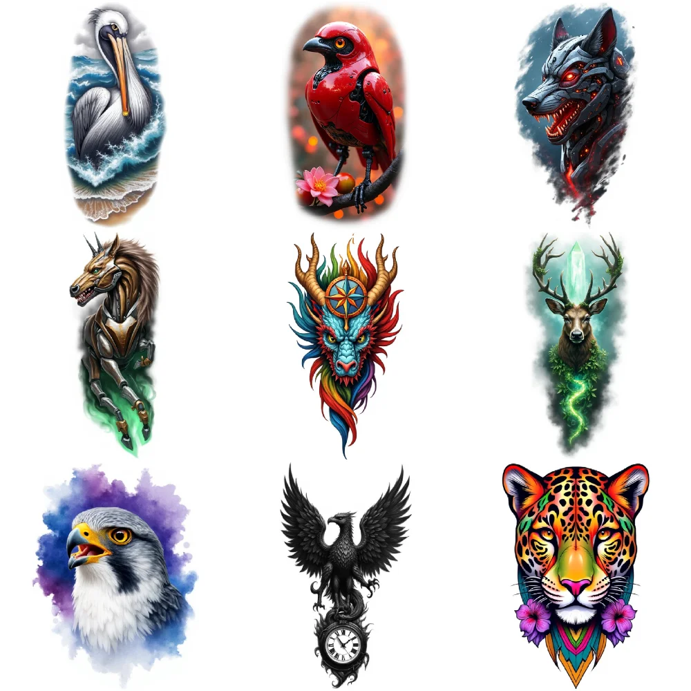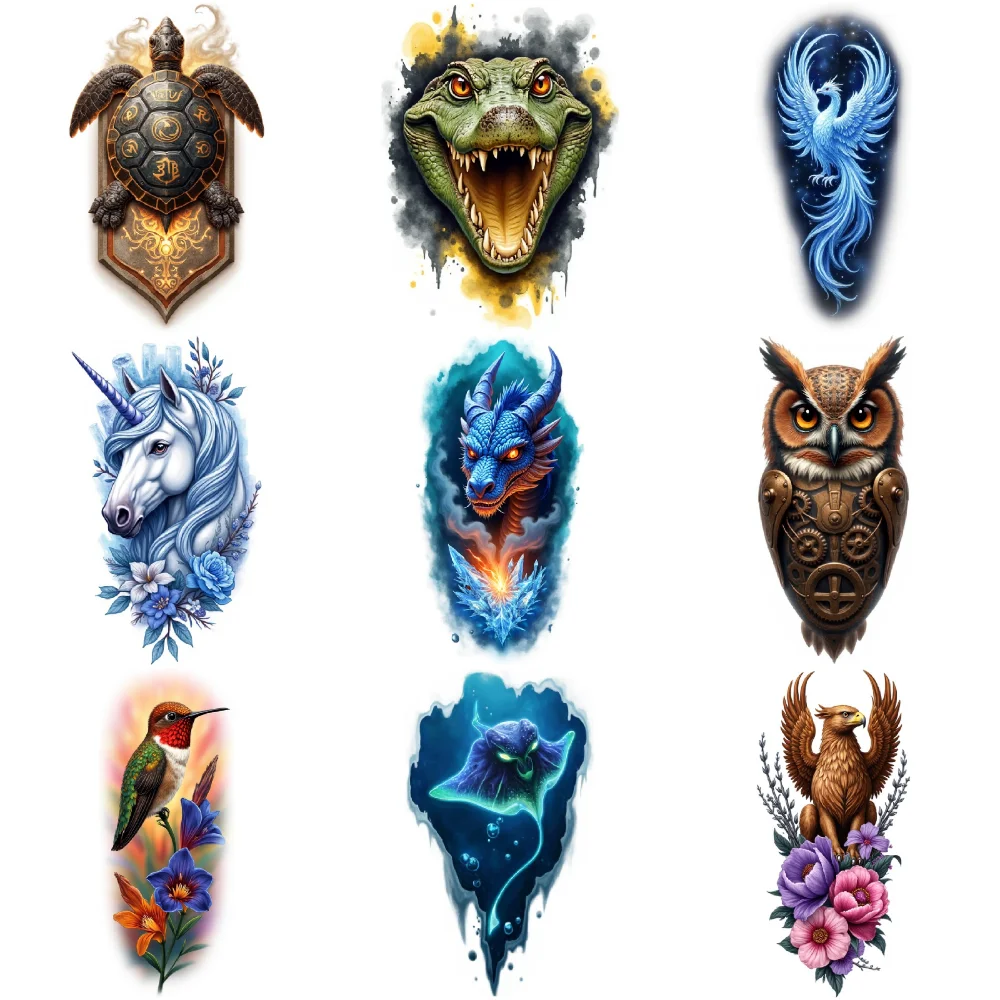 - Includes nine vibrant, waterproof tattoos of mythical creatures like unicorns, eagles, crocodiles, and leopards, with sizes ranging from 9×6 cm, appealing to fantasy lovers for versatile wear.