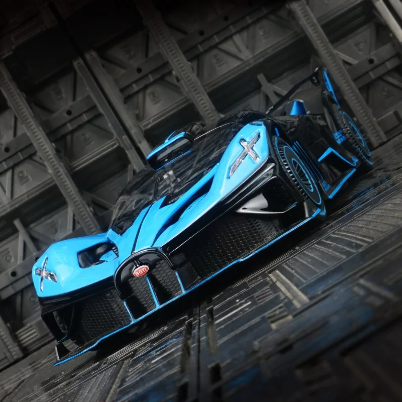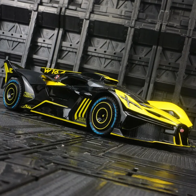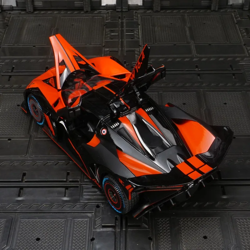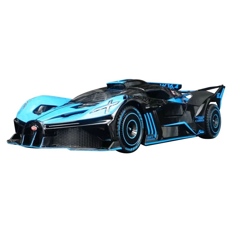 Experience the thrill of high-performance engineering with this detailed 1:24 scale diecast alloy model of a Bugatti sports car, available in vibrant yellow, blue, or red. Crafted from high-quality metal, this collectible features functional doors on both sides, as well as opening front hood and trunk doors, allowing you to showcase intricate interior details. Its aerodynamic design includes a sleek, curved hood with a raised center section, bold black accents, a prominent black mesh front grille, and sharply styled headlights, all finished with a lustrous metallic sheen. Perfect for enthusiasts aged 14 and above, this model combines craftsmanship with dynamic appeal for a truly impressive display piece.