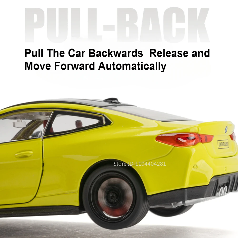 Bring the thrill of high-performance sports cars home with this highly detailed 1:24 diecast alloy model. Available in vibrant colors like purple, white, black, yellow, red, and blue, this model measures approximately 20.5 x 9.5 x 6.3 cm for the M4 and 20.7 x 8.2 x 6.6 cm for the M3, featuring a durable metal body, plastic chassis, and rubber tires. It boasts realistic opening doors, pull-back action, sound, and lighting functions, capturing the sleek, aerodynamic design and fine craftsmanship. Perfect for collectors or as a statement gift, this high simulation, durable model elevates any collection or display.