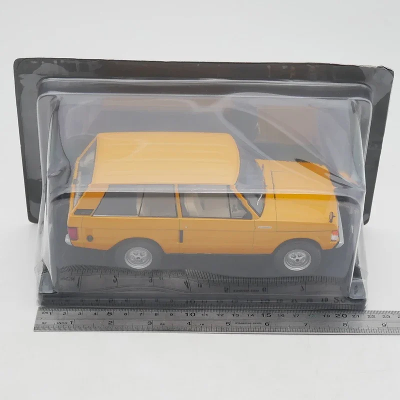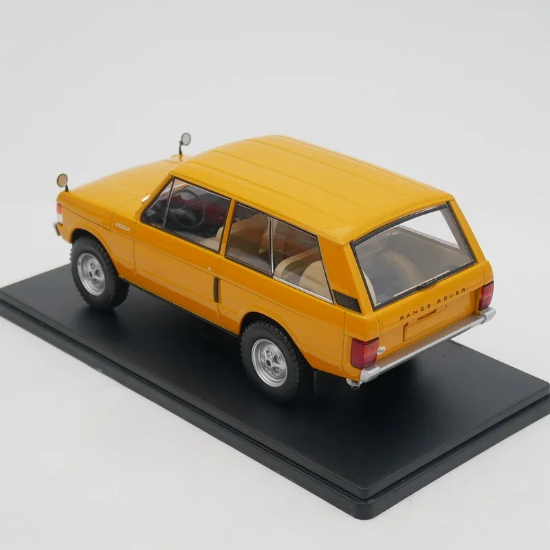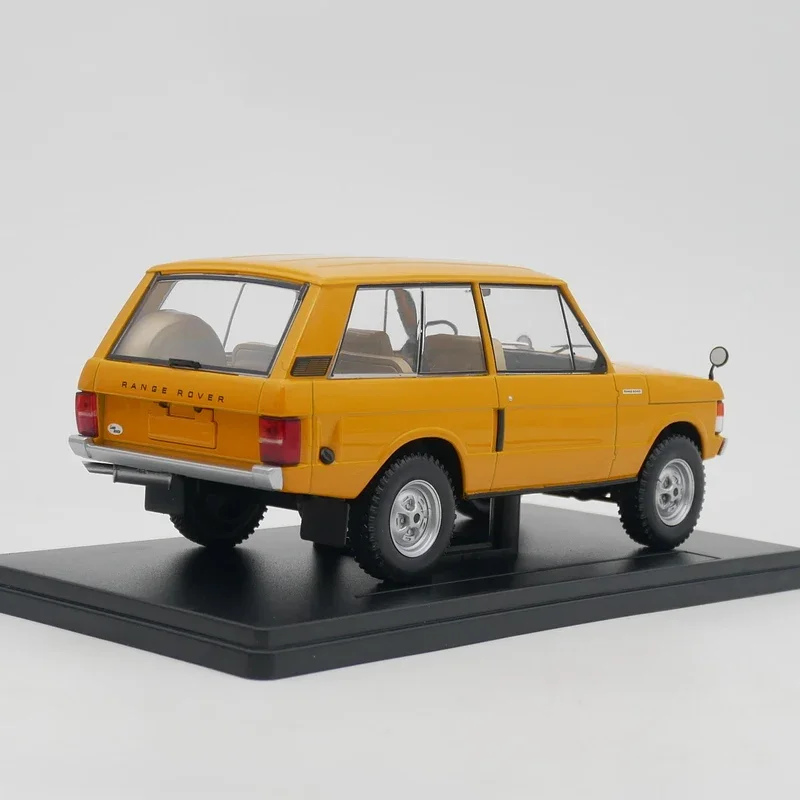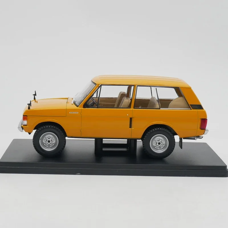 Experience the rugged elegance of this vibrant yellow diecast Range Rover, perfectly capturing its classic, utilitarian style. Measuring approximately 19 centimeters, this 1:24 scale replica boasts a glossy, smooth finish that highlights the vehicle’s bold design and precise details. Its realistic bodywork features a black grille, contrasting with the bright yellow exterior, complemented by silver accents on the bumper and wheels. The clear plastic headlight covers reveal circular lights, while subtle panel lines enhance authenticity. The side mirrors, transparent side windows, and minimalist rear bumper add to the model's lifelike appeal. Crafted from durable alloys and plastics, this static display ornament exudes high-quality craftsmanship, making it an ideal collectible for enthusiasts and collectors alike who appreciate the classic off-road aesthetic.