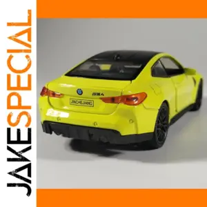 Experience the thrill of owning this stunning 1:32 scale BMW M4 Coupe diecast model, crafted with life-like accuracy and attention to detail. Its glossy yellow finish radiates energy and sophistication, perfect for car enthusiasts and collectors alike. This model captures the sleek aerodynamic silhouette, sharp taillights, black grille featuring the iconic BMW roundel, and the distinctive “M4” badge, making it a true tribute to the real car. The dark tinted windows, matching roof and side mirrors, complemented by intricate black alloy wheels and textured tires, provide a dynamic, sporty look. Crafted from durable metal, it combines aesthetic beauty with impressive realism, elevating your collection or serving as an eye-catching decorative piece.
