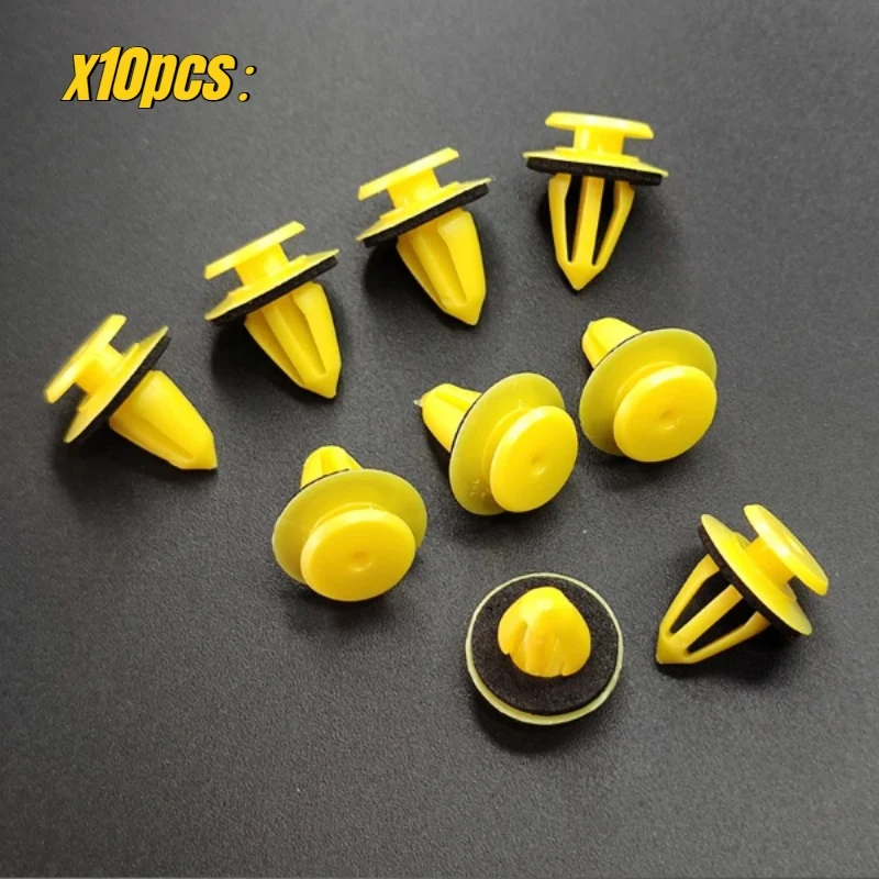 Upgrade your vehicle's panelming with this set of vibrant yellow fastener clips, designed for durability and ease of use. Made from high-quality nylon, these clips feature a sleek, modern appearance with a smooth, convex head measuring 18mm in diameter, and a flexible stem length of 15mm. The striking yellow color ensures quick identification during installation or inspection, while the black washers add a bold contrast for added security and durability. Perfect for securing interior and exterior panels across various vehicle models, these clips give you a reliable and functional fastening solution that combines practicality with a visually appealing aesthetic. Whether you're working on your car's interior trims or external body panels, these clips are the ideal choice to keep everything firmly in place and looking sharp.