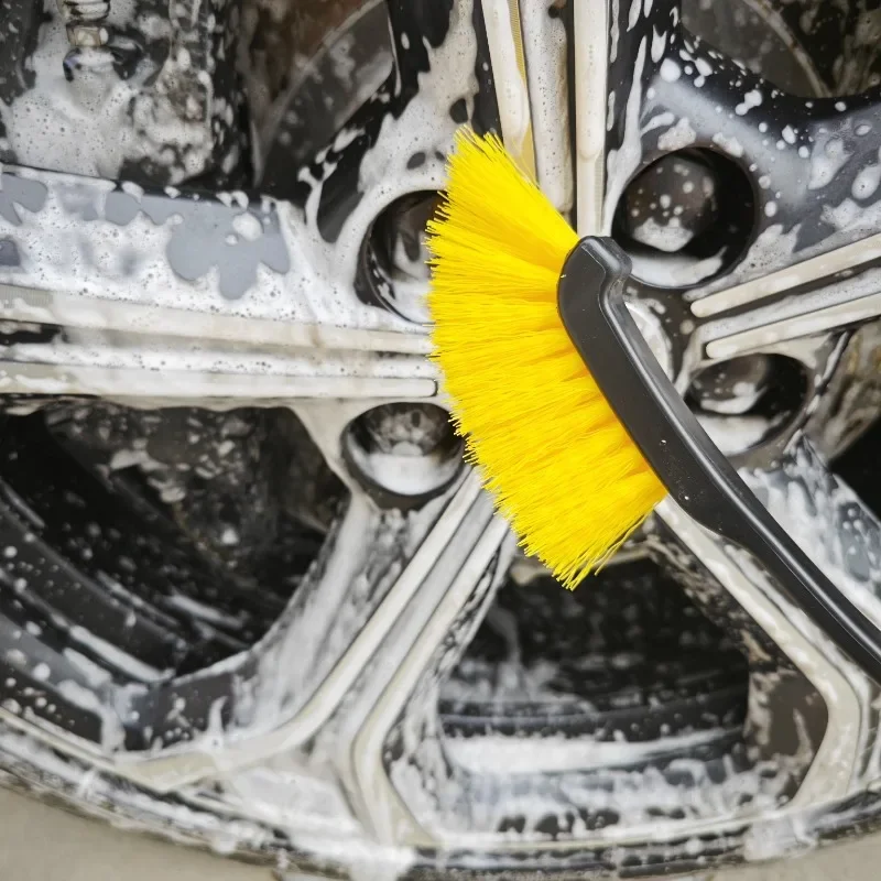 Vibrant Yellow Car Wheel Rim Wash Brush