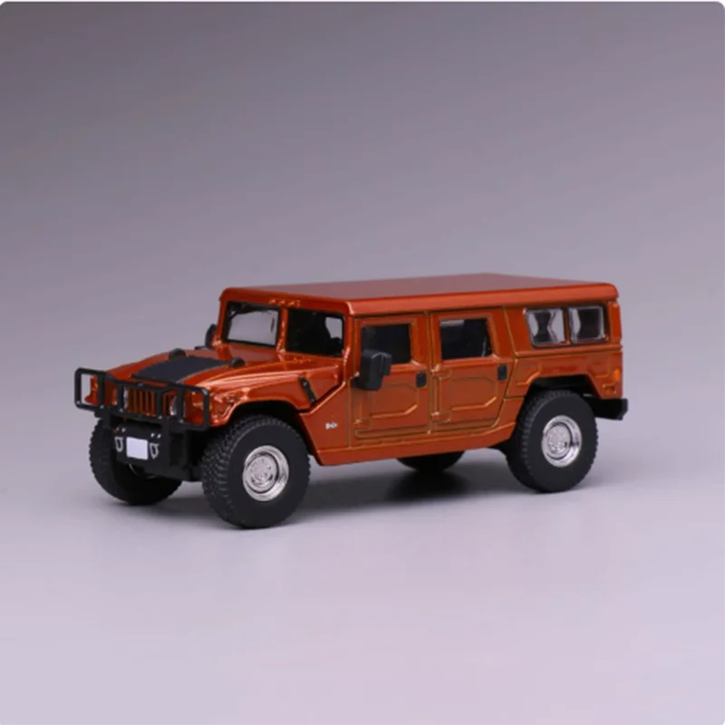 Experience the rugged charm of this brightly colored, highly detailed diecast model of a Hummer H1. Measuring approximately 7 centimeters in length at a 1:64 scale, this sturdy alloy vehicle captures the essence of off-road adventure with bold black accents on tires, mirrors, and front grille. Its boxy, utilitarian design features a flat roof and textured side panels, complemented by rugged tires with pronounced tread patterns. Crafted with meticulous attention to detail, this model showcases a robust metallic finish, realistic molding, and distinctive front headlights. Perfect as a display piece, it brings a sense of adventure into your collection with its durable, yet fragile, construction. An ideal addition for enthusiasts seeking a highly realistic miniature vehicle that emphasizes both style and durability.