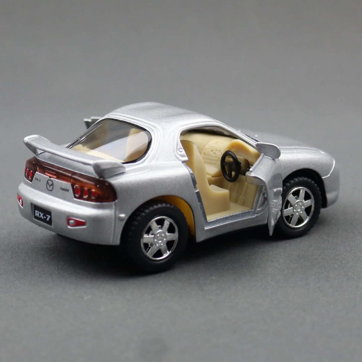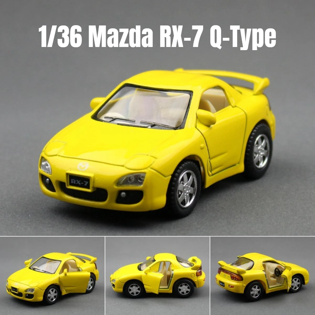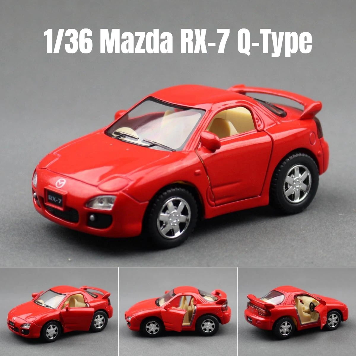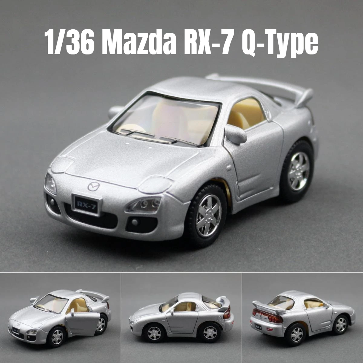 - This diecast model measures at a 1/36 scale, capturing realistic proportions of the Mazda RX-7 Q-Type with detailed exterior and interior features.