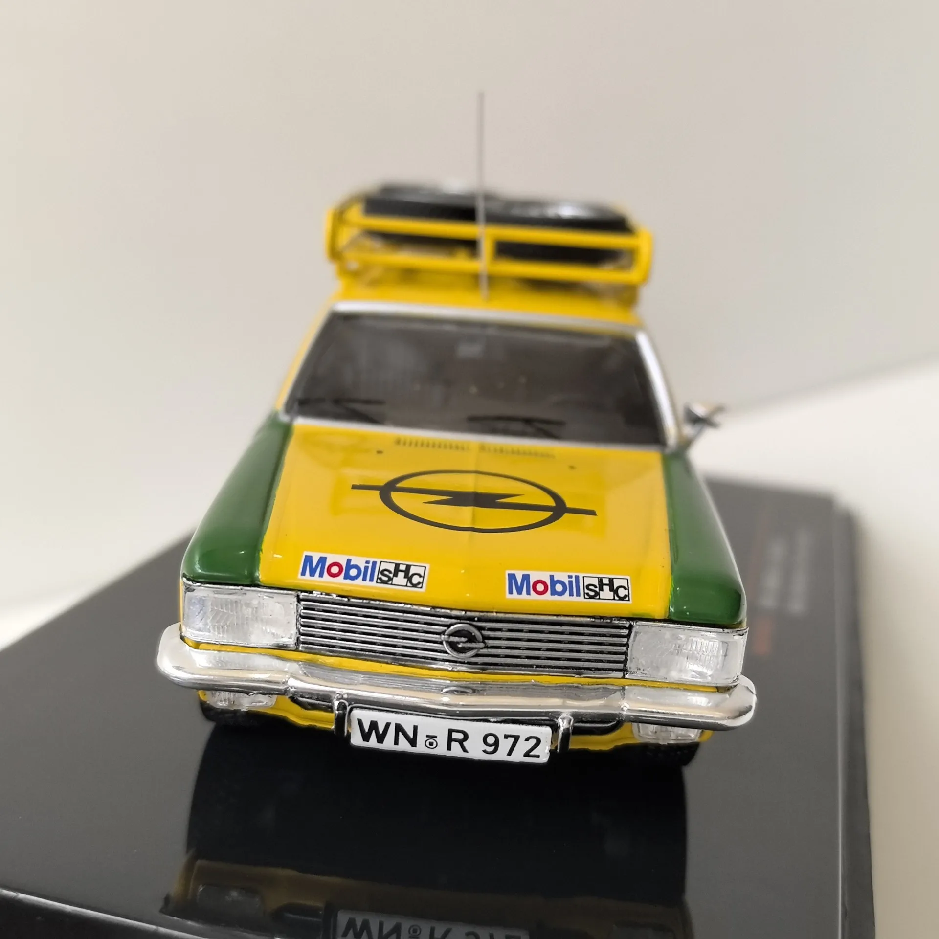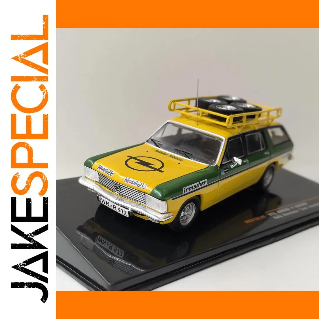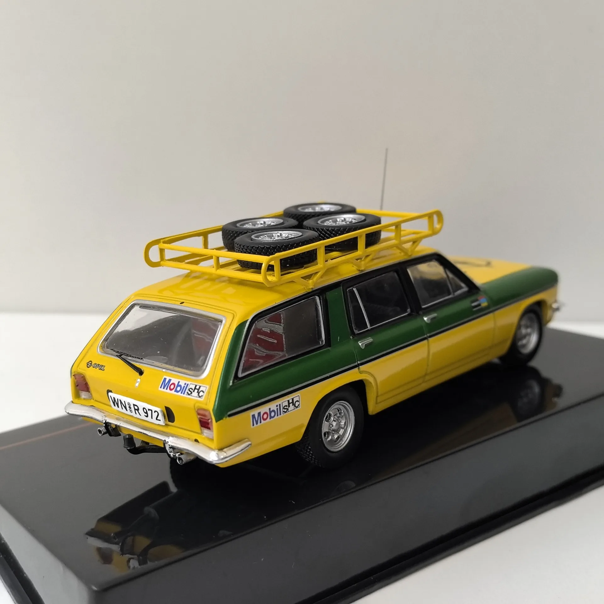 This highly detailed 1:43 scale diecast model of the Opel Admiral B Caravan, crafted by Welly, showcases a vibrant yellow body with bold green accents and realistic decals, including a lightning bolt symbol and “Mobil” logos. Made from alloy, it features rotatable wheels, clear windows, silver rims, and a yellow luggage rack carrying four spare tires with silver rims. The model captures the rugged, rally-inspired aesthetic with an antenna on the roof, reflecting authentic styling perfect for collectors. Conforming to safety standards, it is an excellent addition for adult enthusiasts, offering longevity, craftsmanship, and visual appeal as a collectible souvenir.