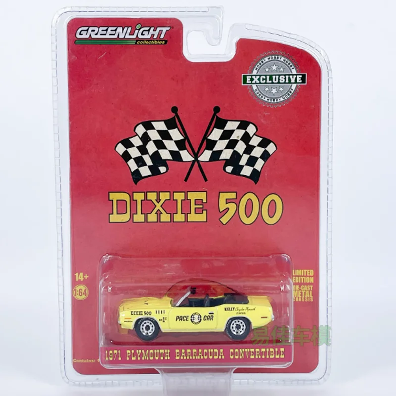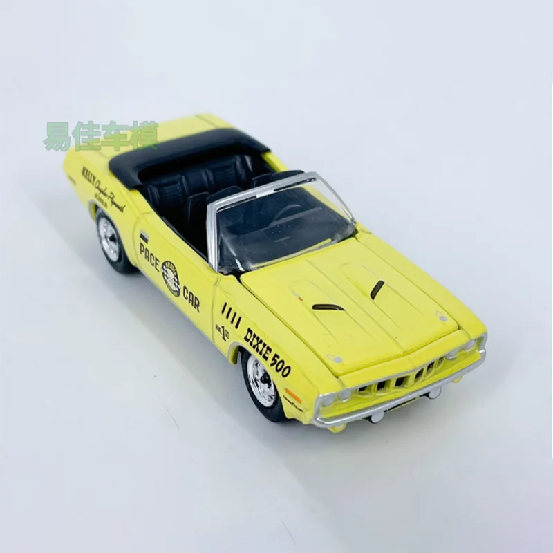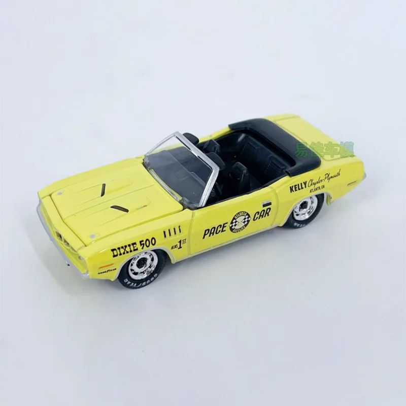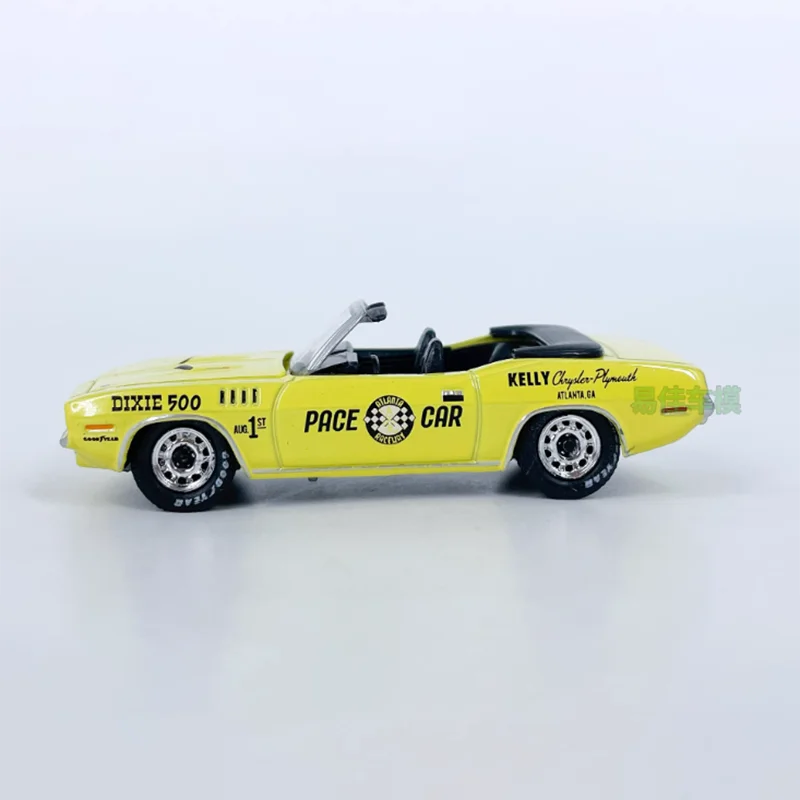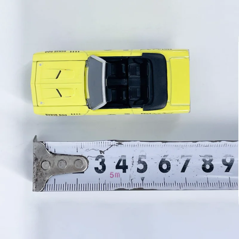 - The bright yellow body is complemented with black accents, including a fold-down soft top, racing stripes, and detailed decals like “DIXIE 500” and “PACE CAR”.
