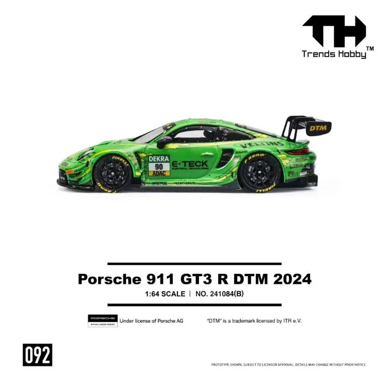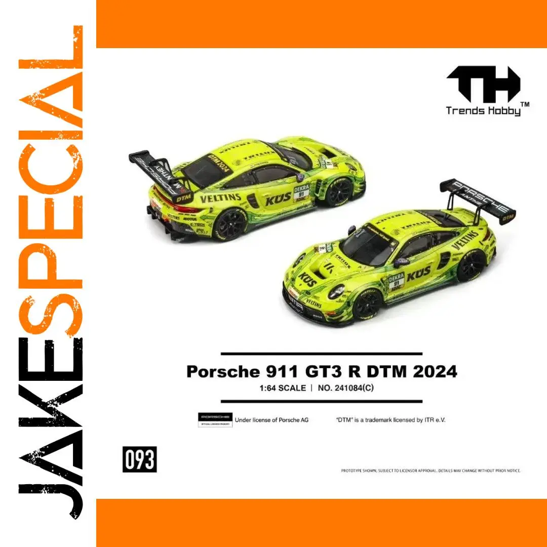 Experience the thrill of racing with this detailed 1:64 scale diecast model of the Porsche 911 GT3 R DTM 2024, featuring a vibrant yellow finish accented with black details and sponsor logos. Crafted with an alloy body, plastic chassis, soft rubber tires, and ABS plastic interior components, this approximately 7 cm model boasts sleek aerodynamic contours, a prominent rear wing, black spoke wheels, and realistic decals that capture its high-performance racing essence. Suitable for collectors and enthusiasts aged 14 and above, its fragile design emphasizes craftsmanship and authenticity, making it an impressive display piece for any racing aficionado.