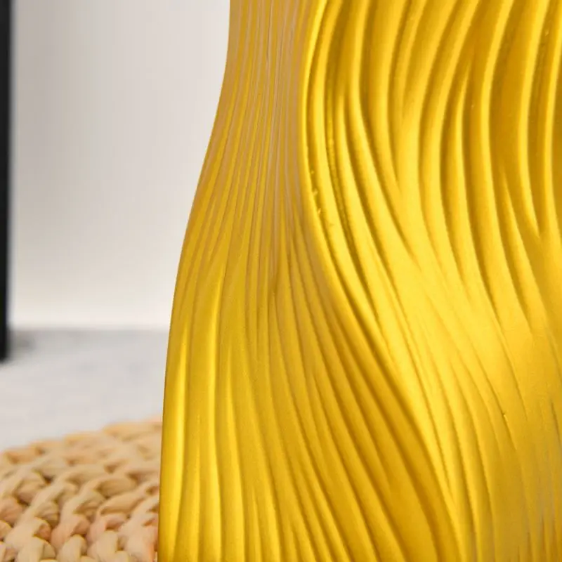 Step into a space filled with elegance and modern charm using this stunning yellow resin wave vase. Its dynamic, undulating design instantly captures attention, bringing a lively touch to your décor. Crafted from durable resin, this large vase features a textured surface with spiral grooves, emphasizing its contemporary style. The wide mouth makes it versatile for various floral arrangements, from bright bouquets to pampas reeds. Its glossy finish adds a sophisticated shine, perfect for accentuating modern living rooms, bedrooms, or entryways. Imagine hosting guests with this eye-catching centerpiece, elevating your interior aesthetics. It's more than a vase; it’s a bold statement piece that invites positivity and stylistic flair into your home.